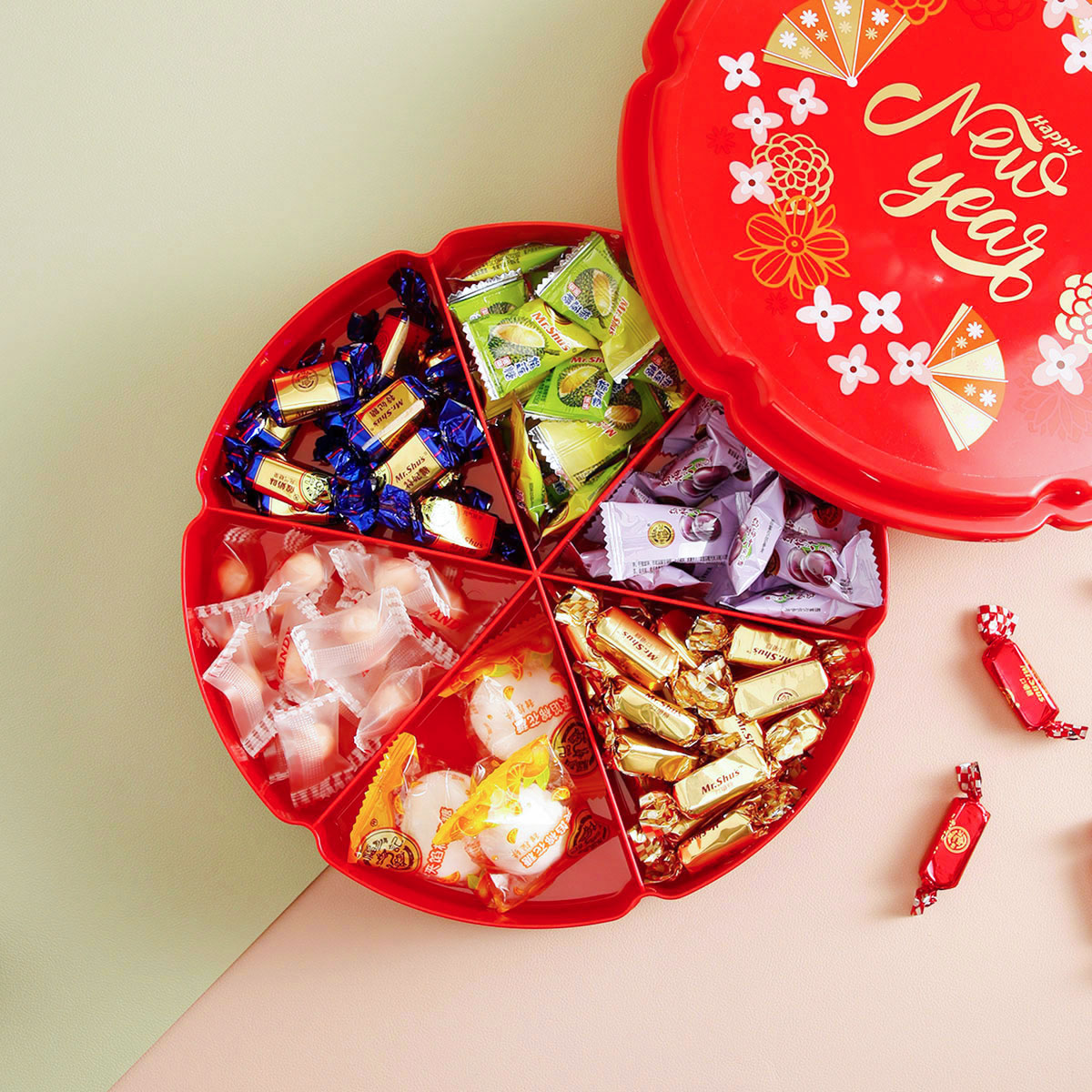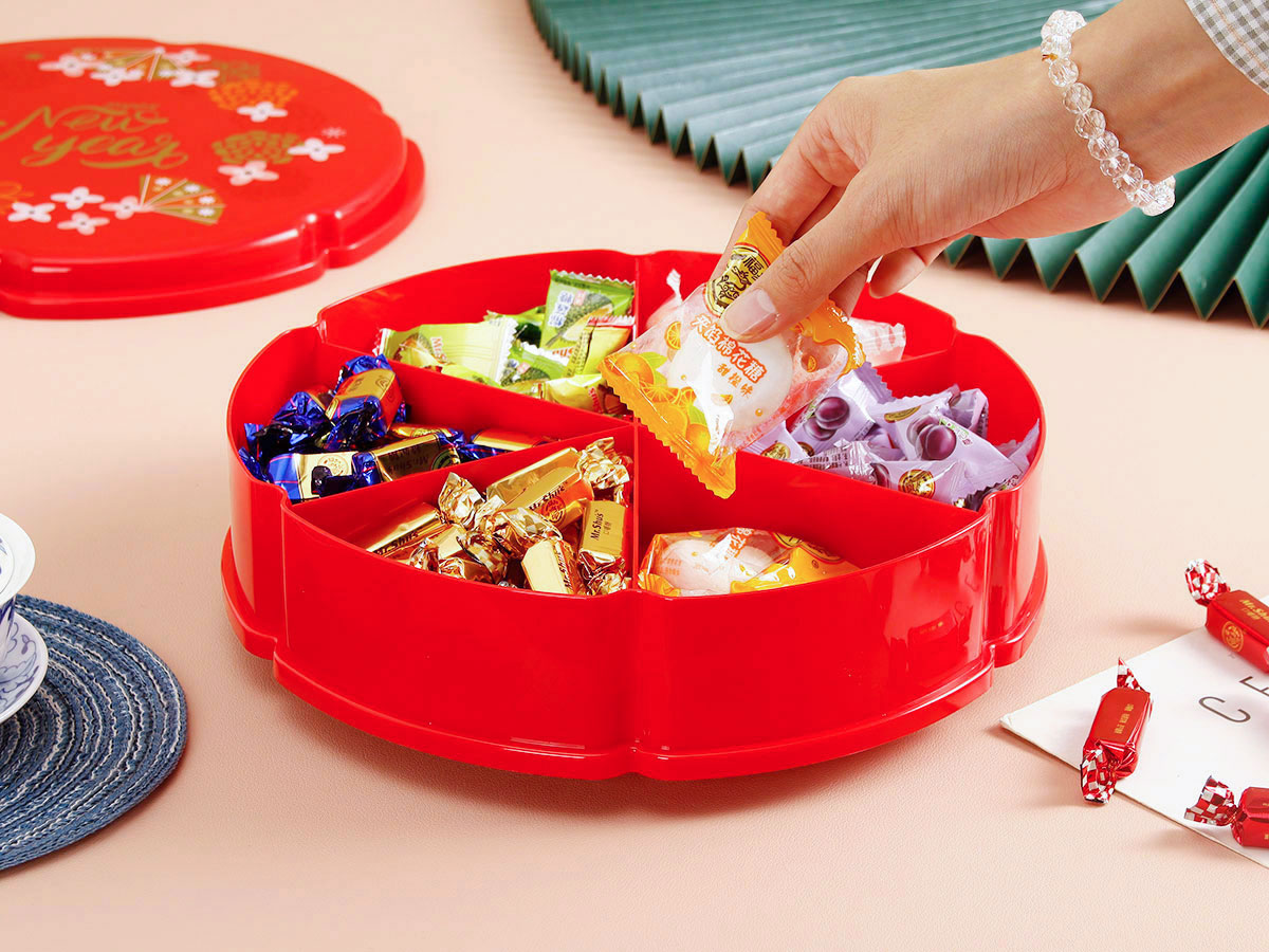 單層/雙層圓型/花型旋轉(zhuǎn)糖果盒  紅色/綠色