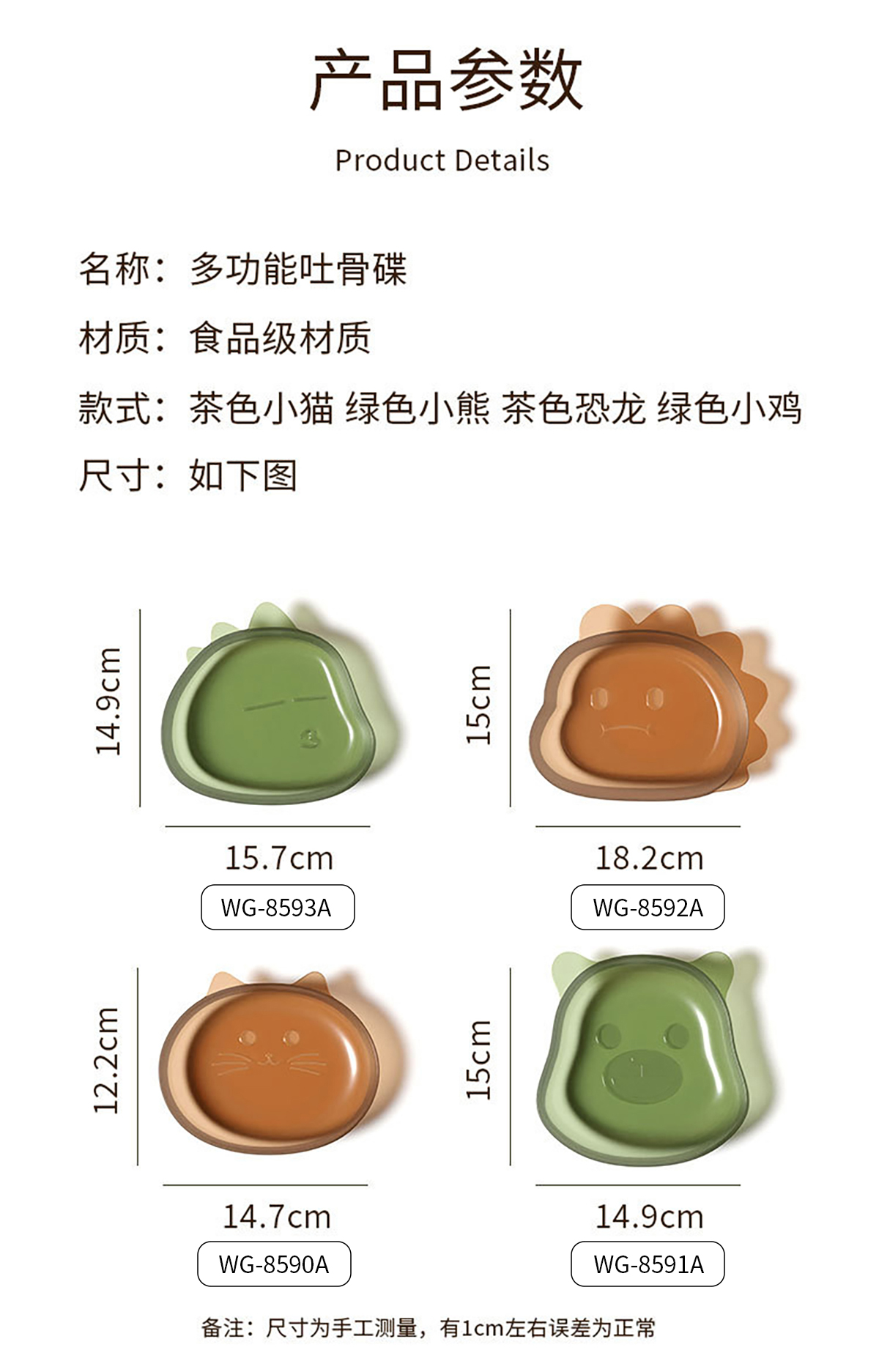 萌趣貓/熊/恐龍/小雞透明盤