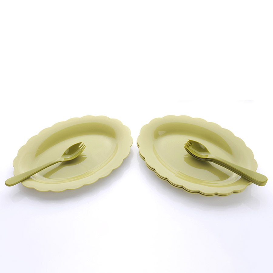 得力熊歐式中號(hào)花邊橢圓餐盤(pán)(4pcs)( 配4pcs叉匙)