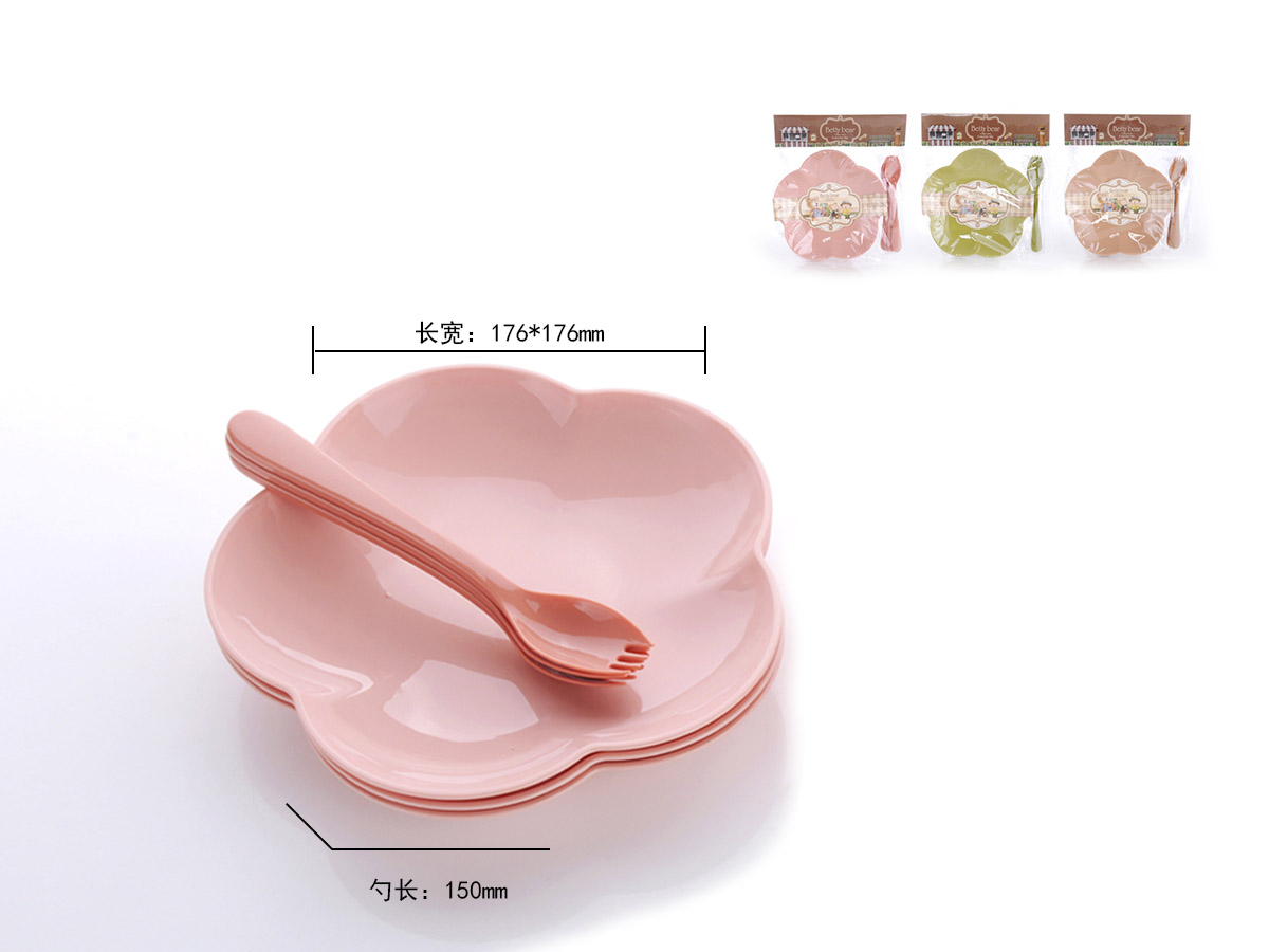 得力熊歐式中號簡約梅花餐盤(4pcs)( 配4pcs叉匙)
