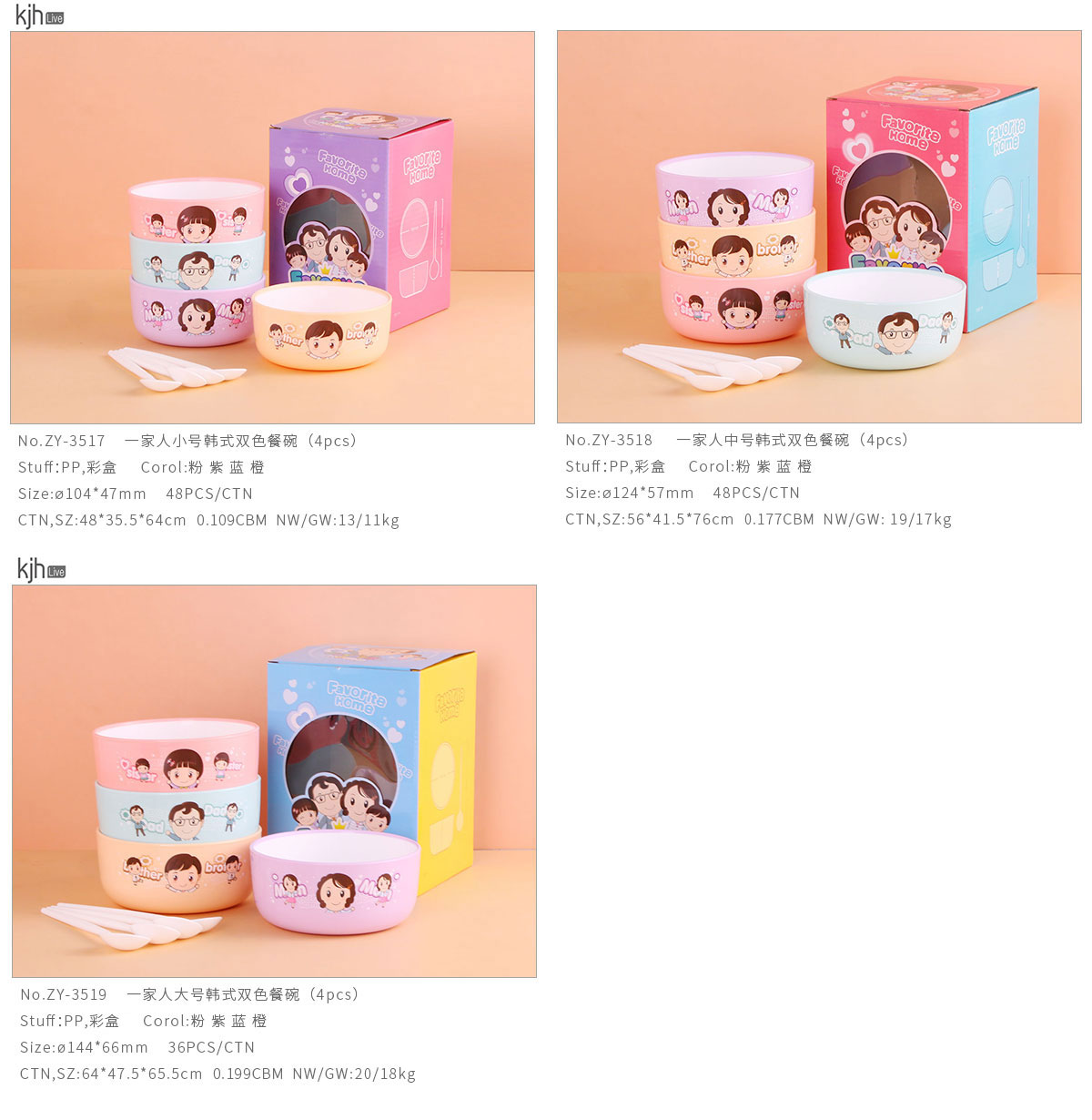 一家人小號/中號/大號韓式雙色餐碗(4pcs)