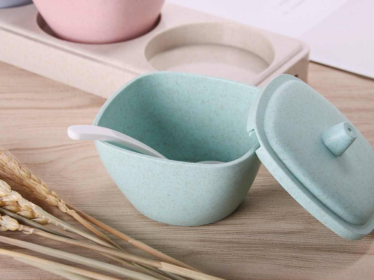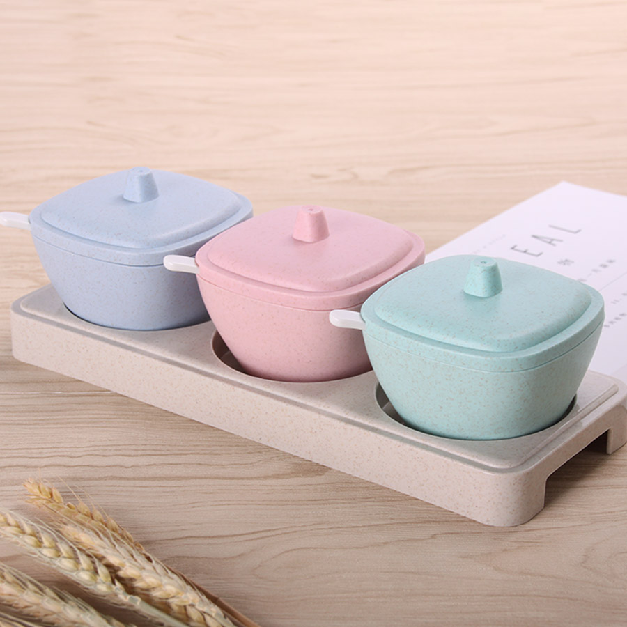 方形日式麥秸稈調(diào)味罐三件套