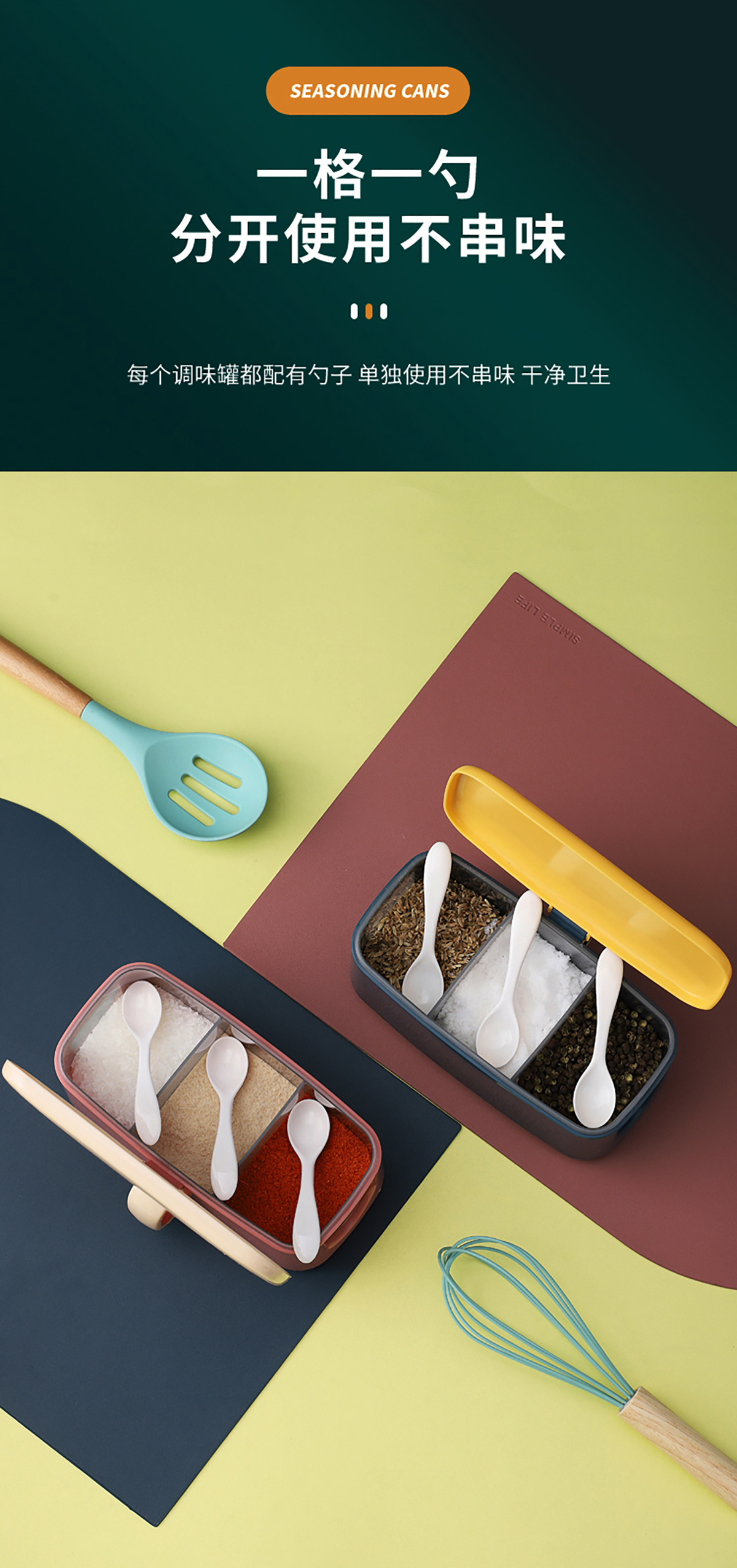 莫蘭迪雙層/手提式(單格/兩格/大兩格/大三格)調(diào)味盒