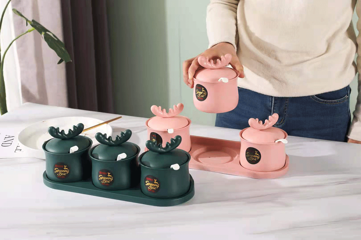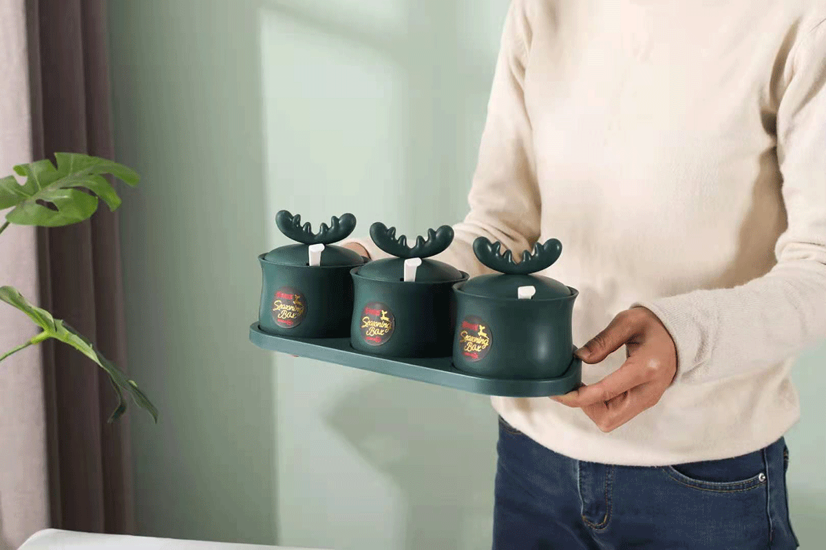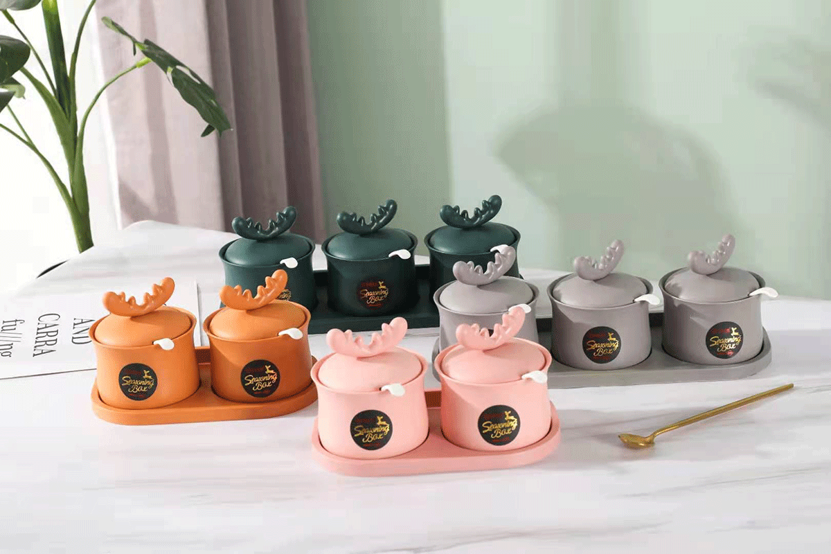 掛壁萌鹿兩格/三格調(diào)味盒