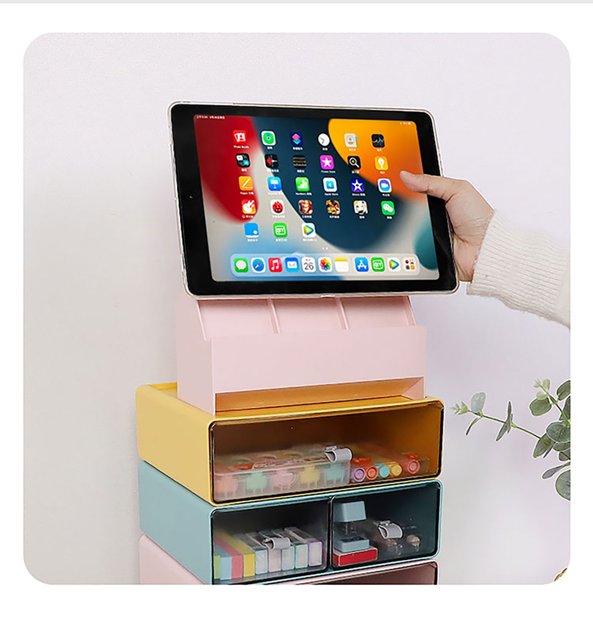 Remarks: 組合層柜:白 灰 粉 藍 黃/多功能置物架:白 粉