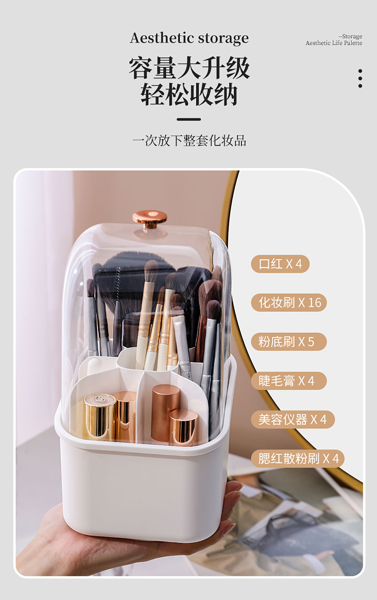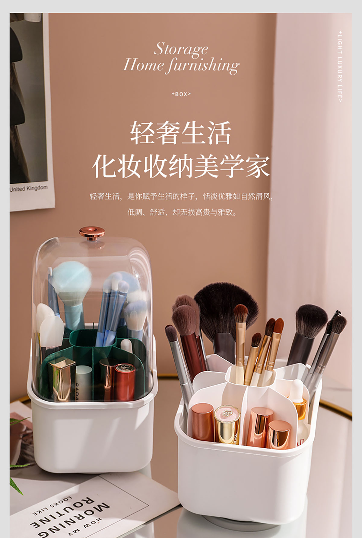 方形化妝收納盒 (帶蓋/不帶蓋)