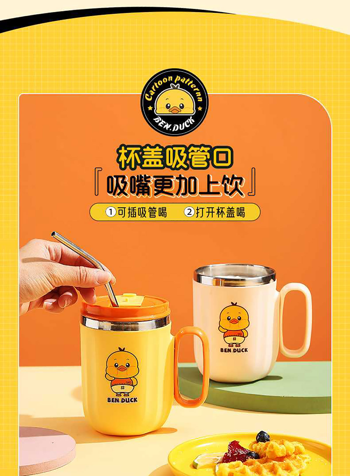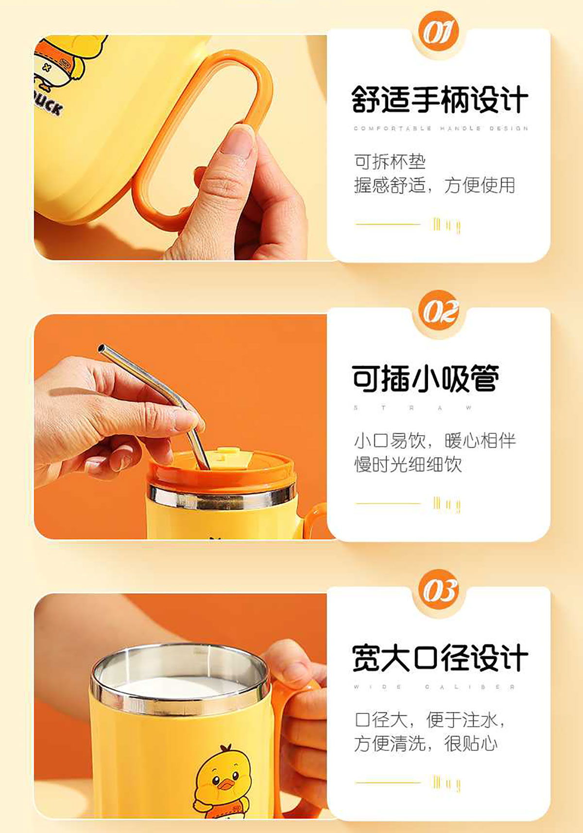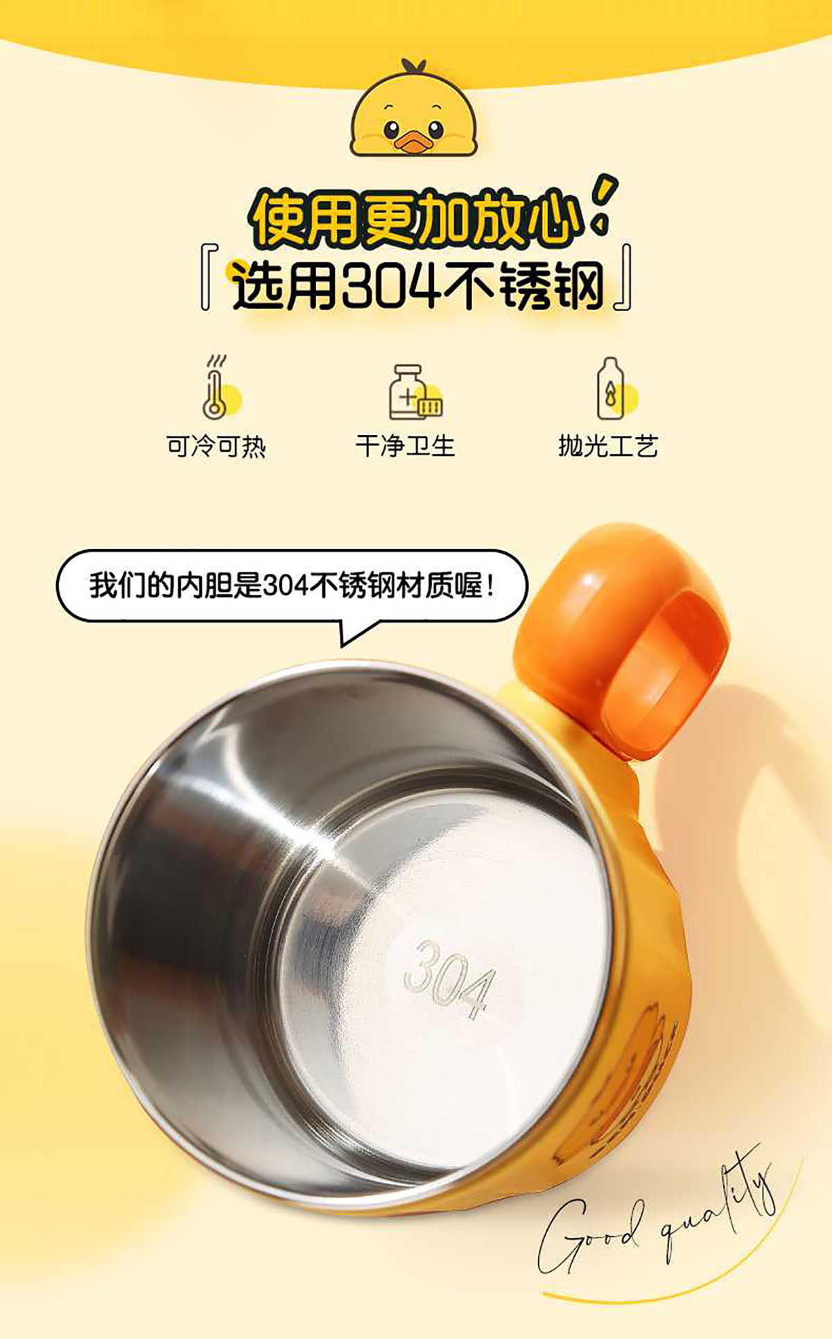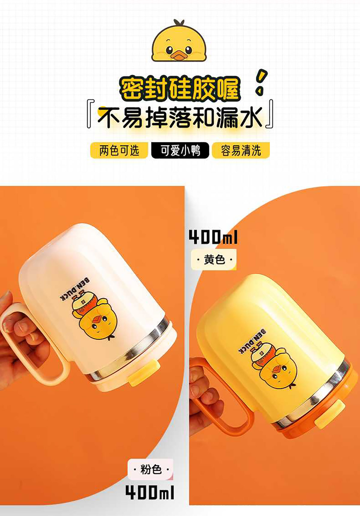 400ml笨鴨304不銹鋼翻扣保溫杯(帶手柄)