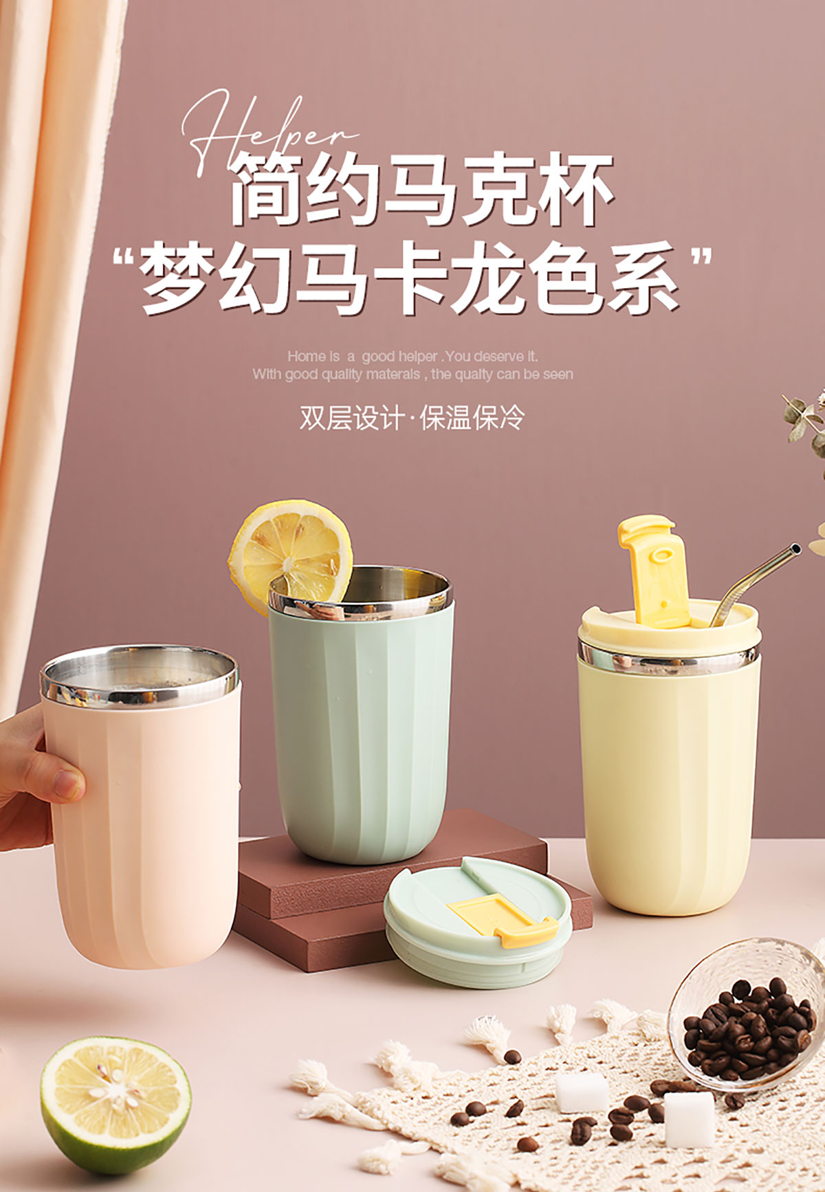 500ml馬卡龍翻扣304不銹鋼馬克杯