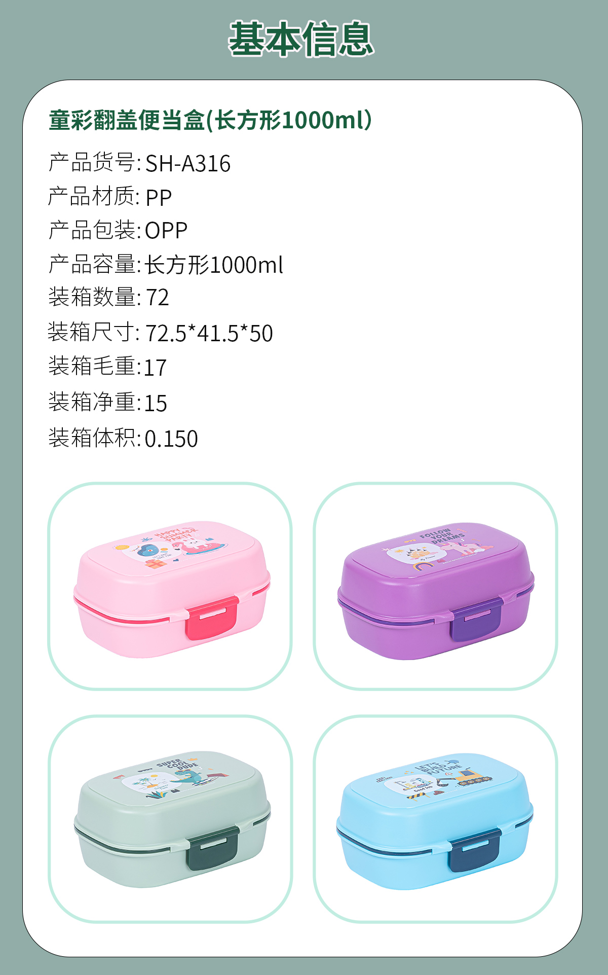 SH-A314:長方形1000ml+水杯350ml