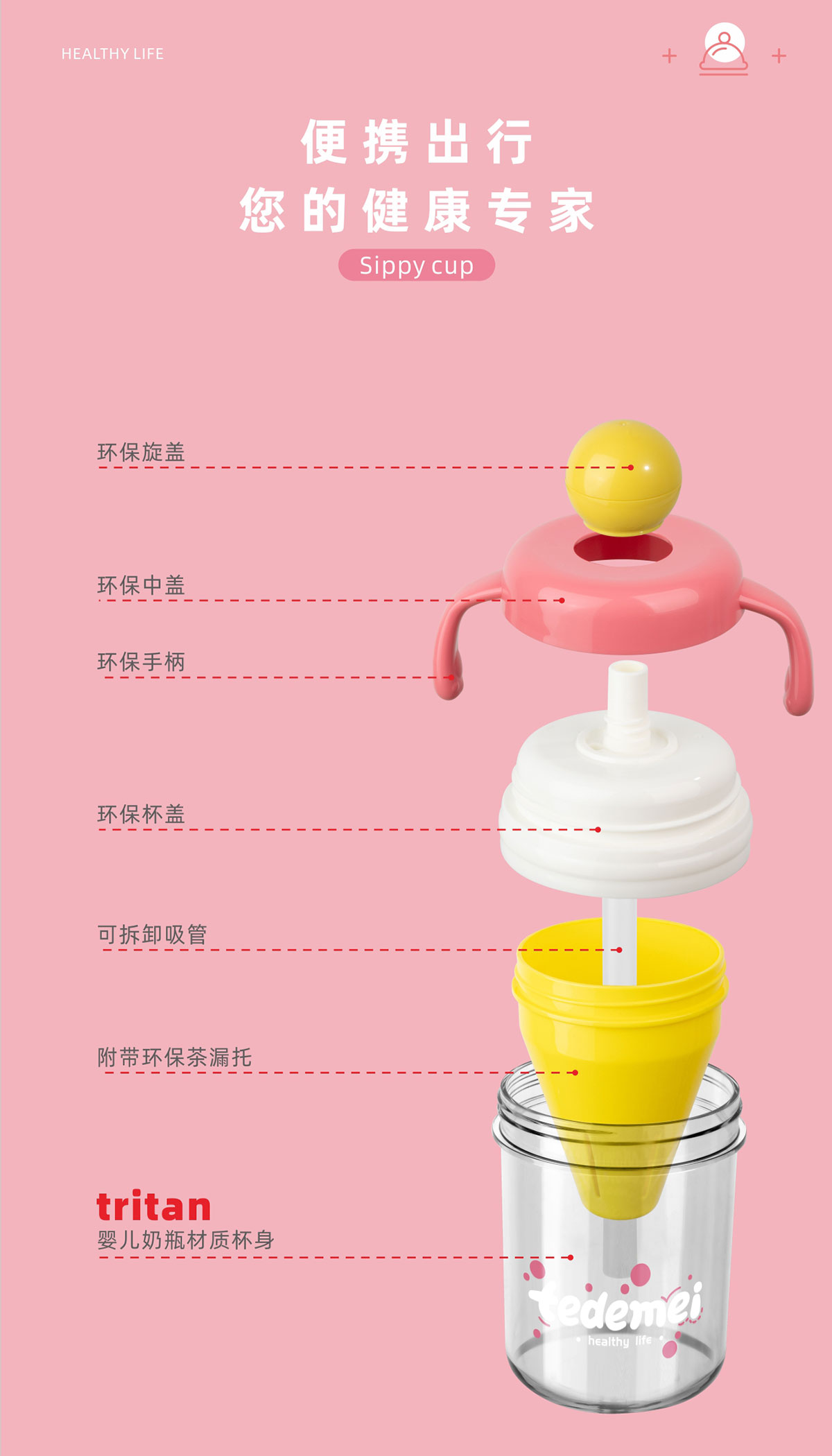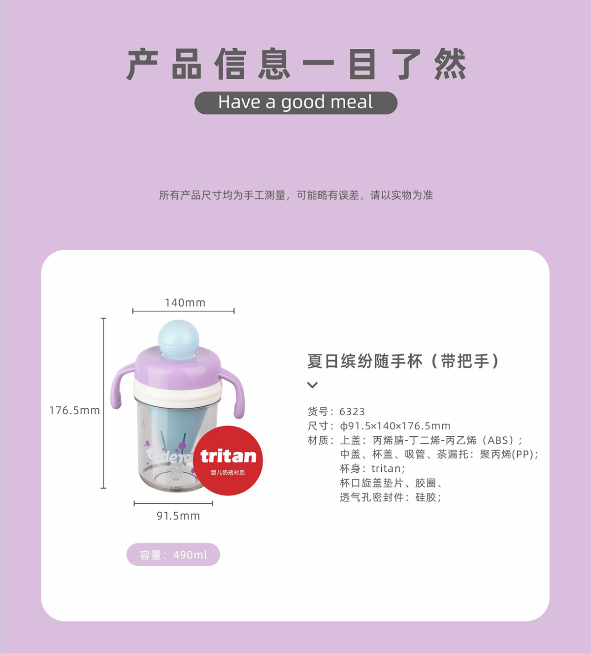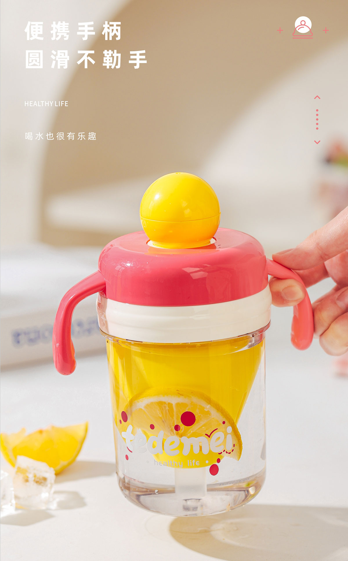 夏日繽紛隨手杯(帶把手)490ml