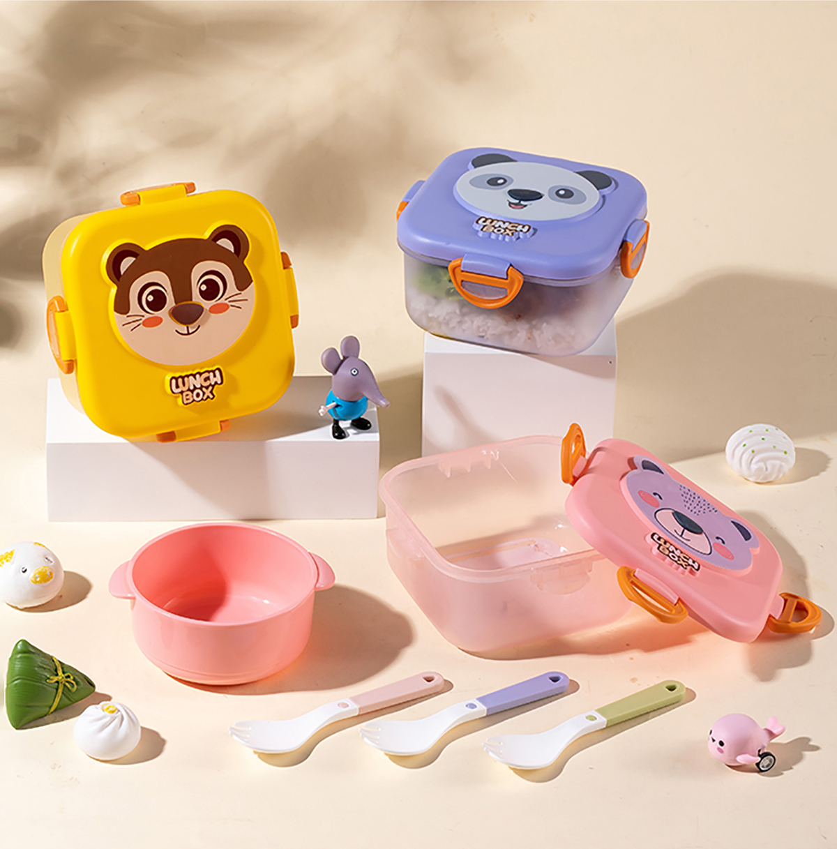 童樂透明長方形/圓形/正方形便當(dāng)盒套裝