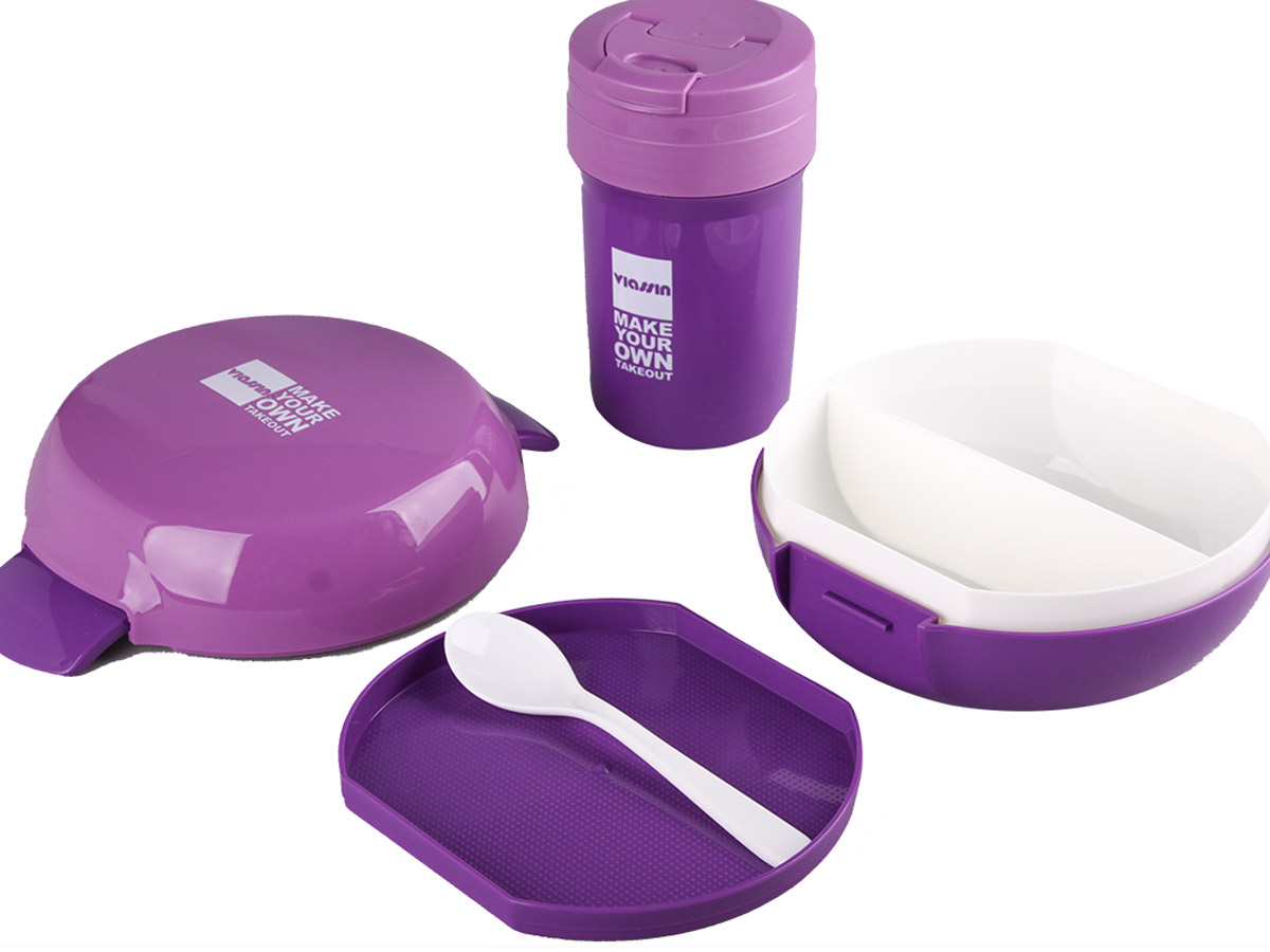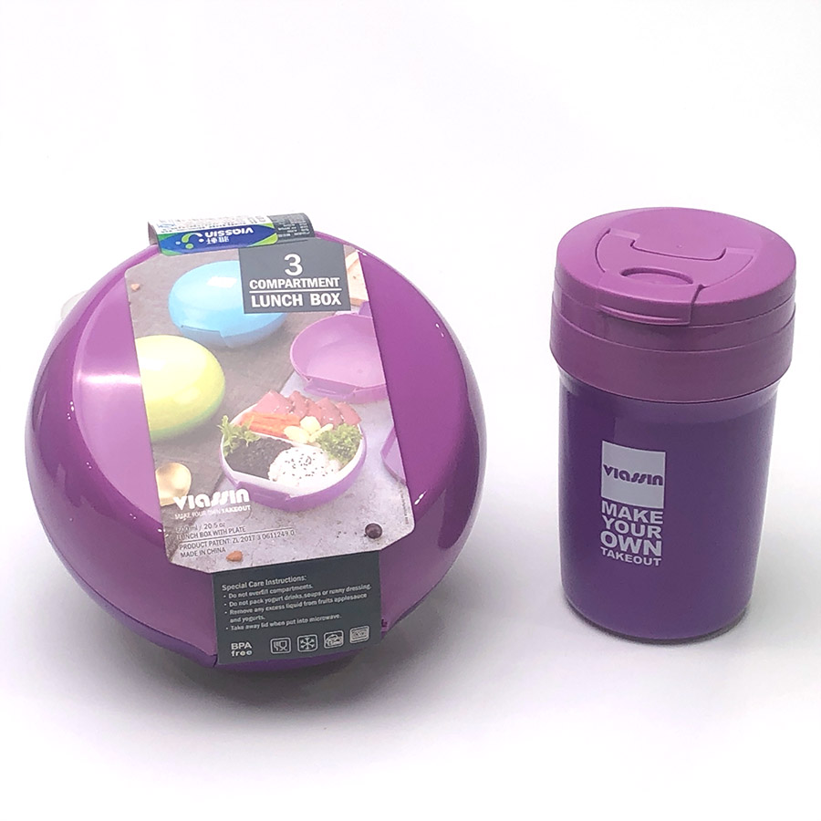 鮮樂(lè)3格餐盒+隨手杯套裝(圓形600ml+350ml)