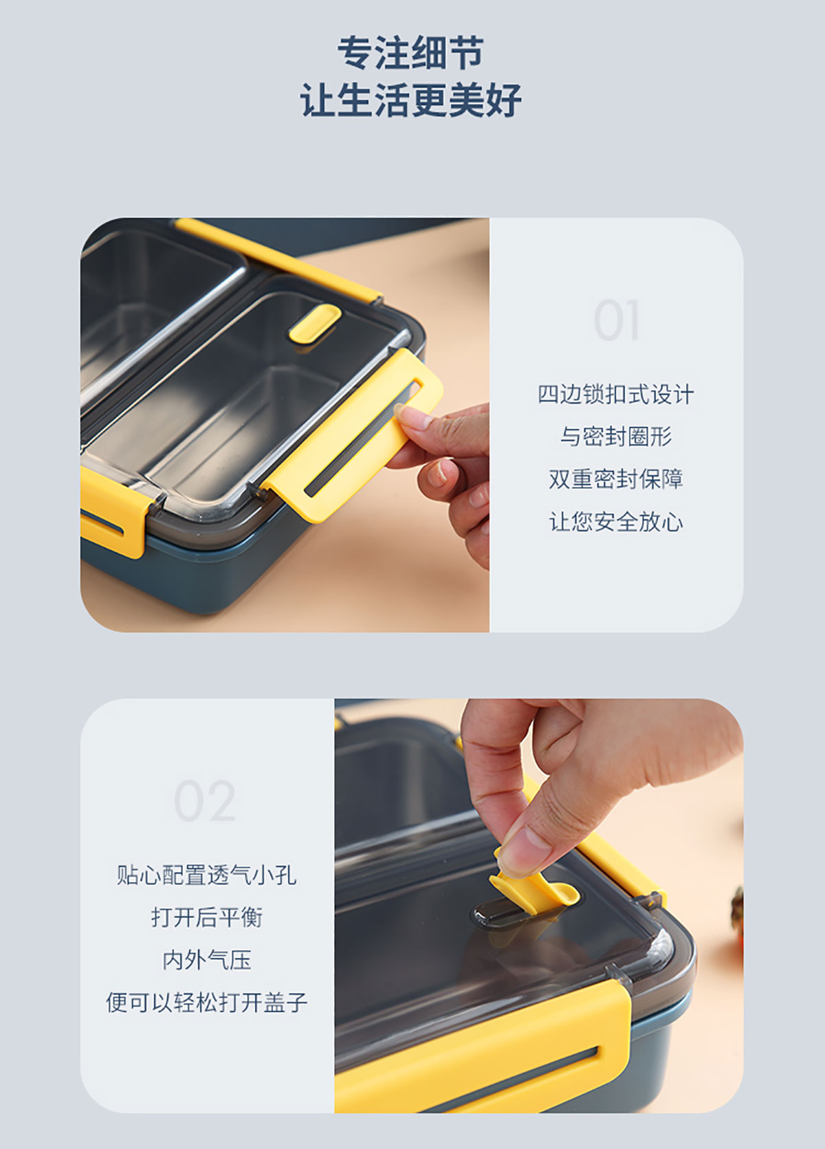 莫蘭迪兩格/三格304不銹鋼餐盒