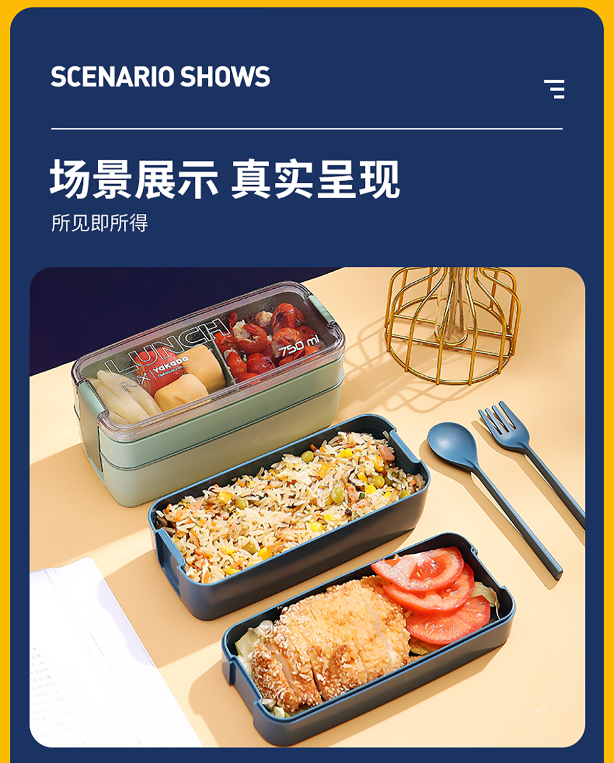 莫蘭迪透明蓋飯盒(長扣)750ml