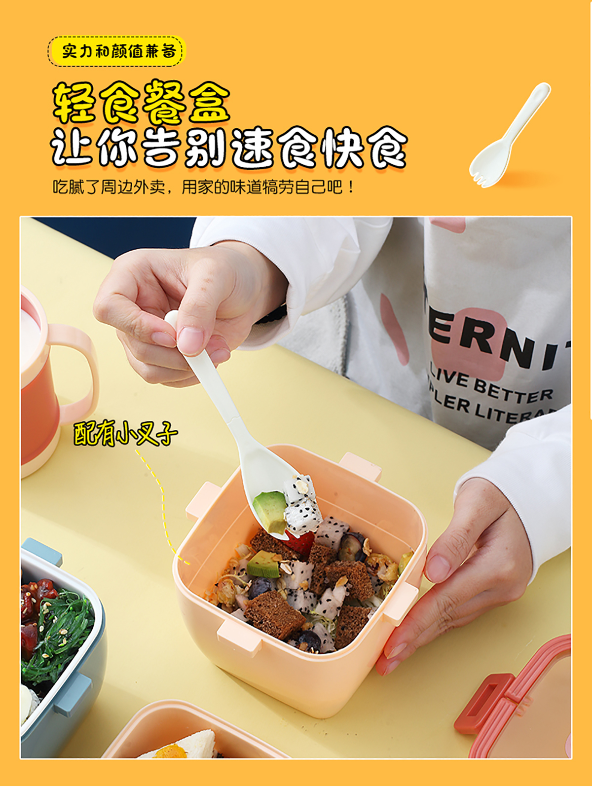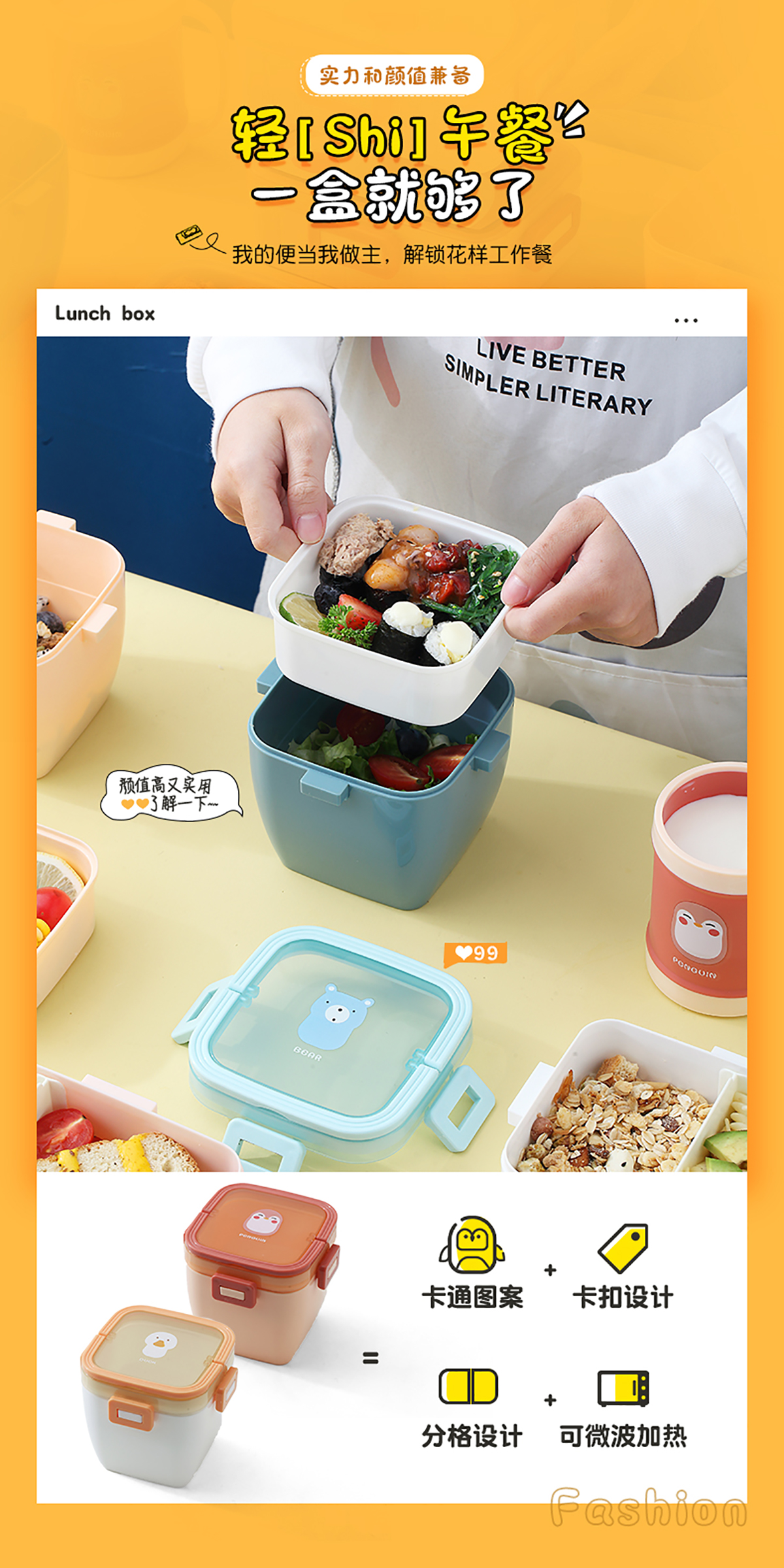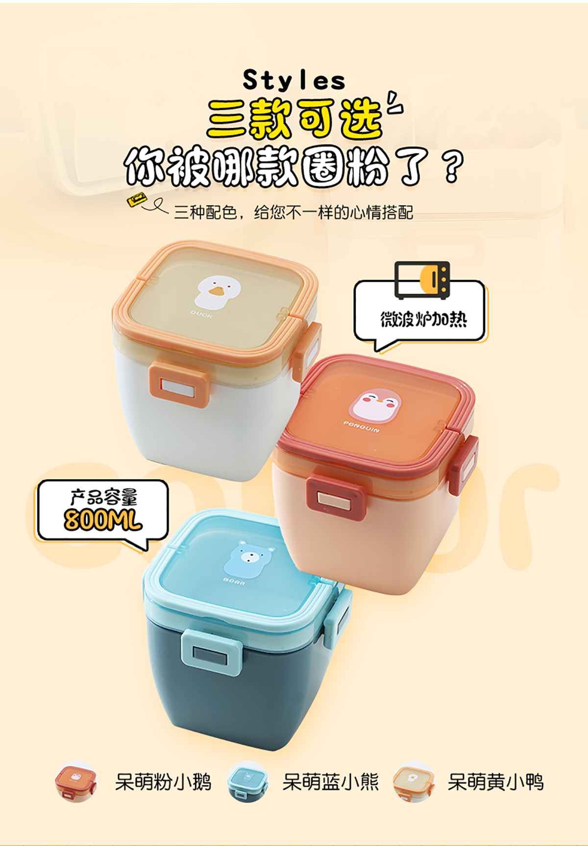 卡通方扣雙層手提飯盒800ml