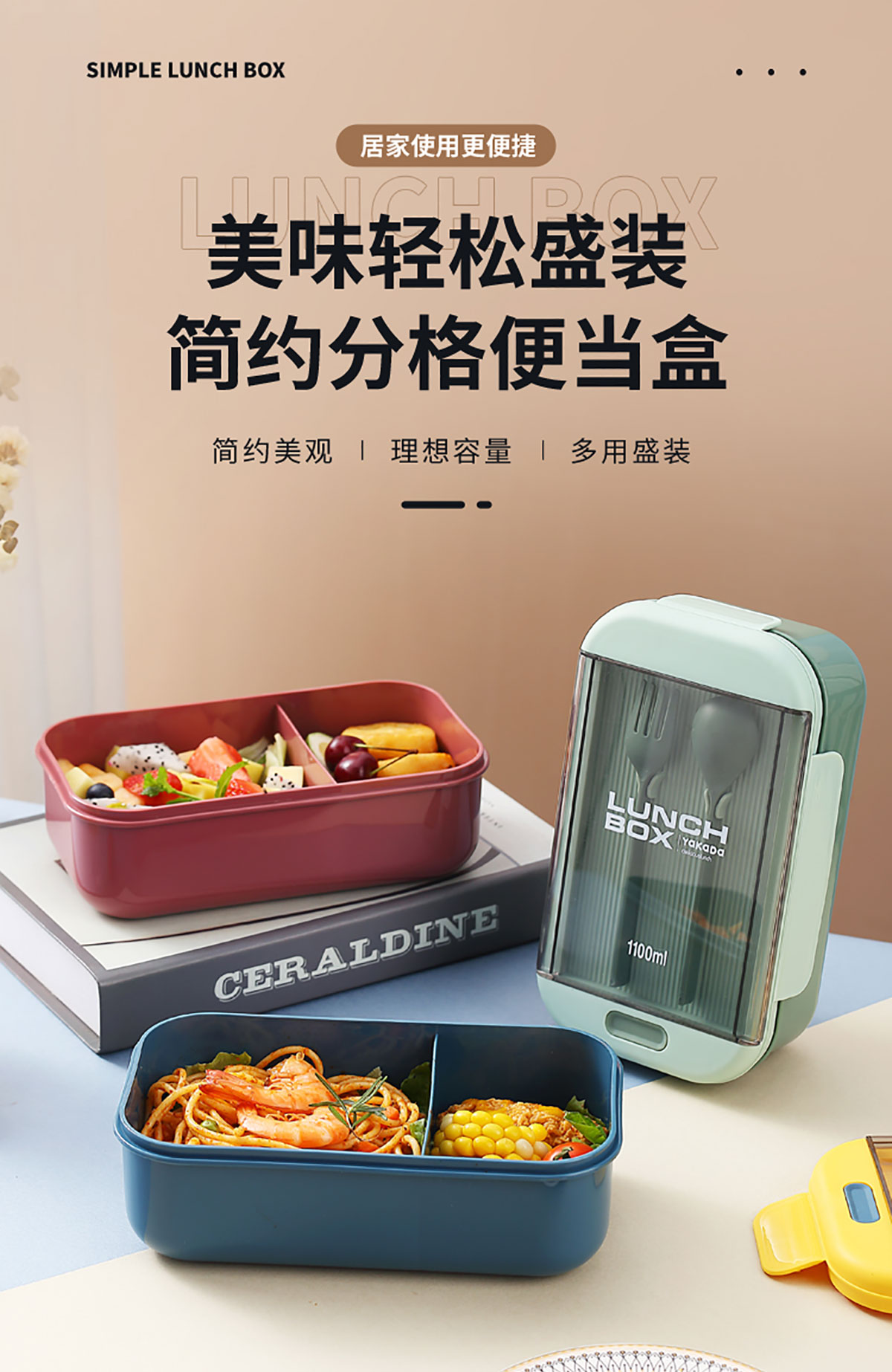 長方透明蓋飯盒1100ml