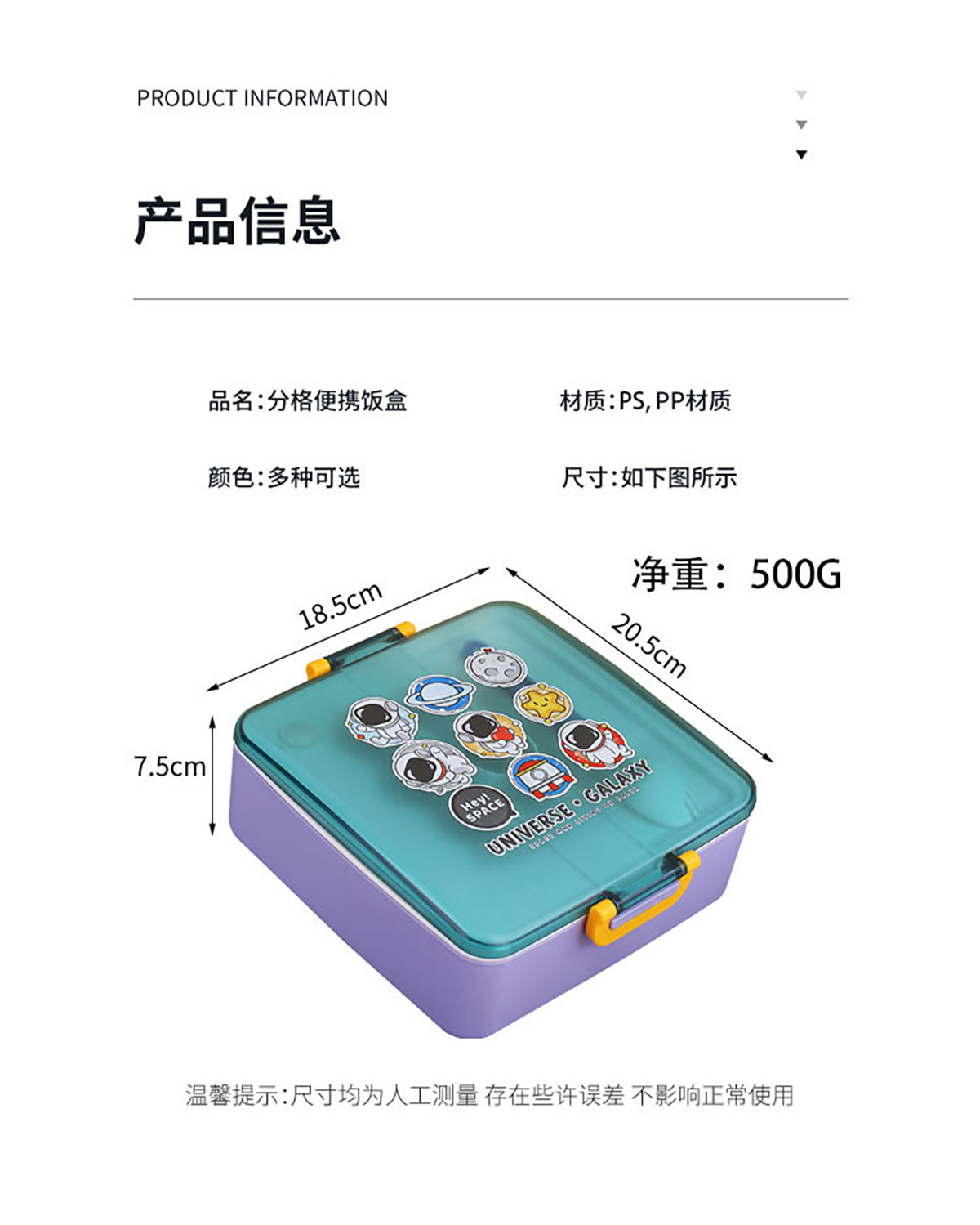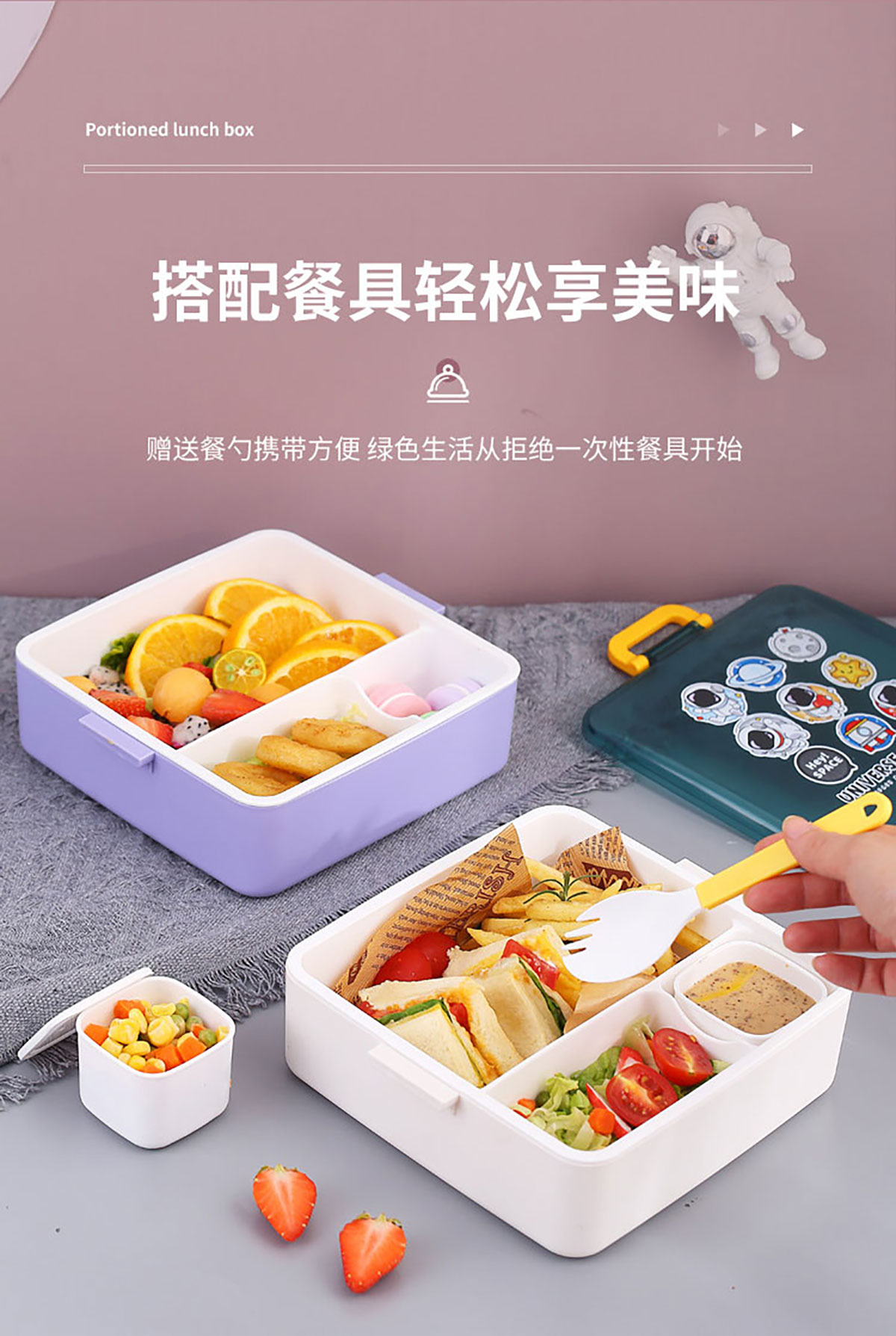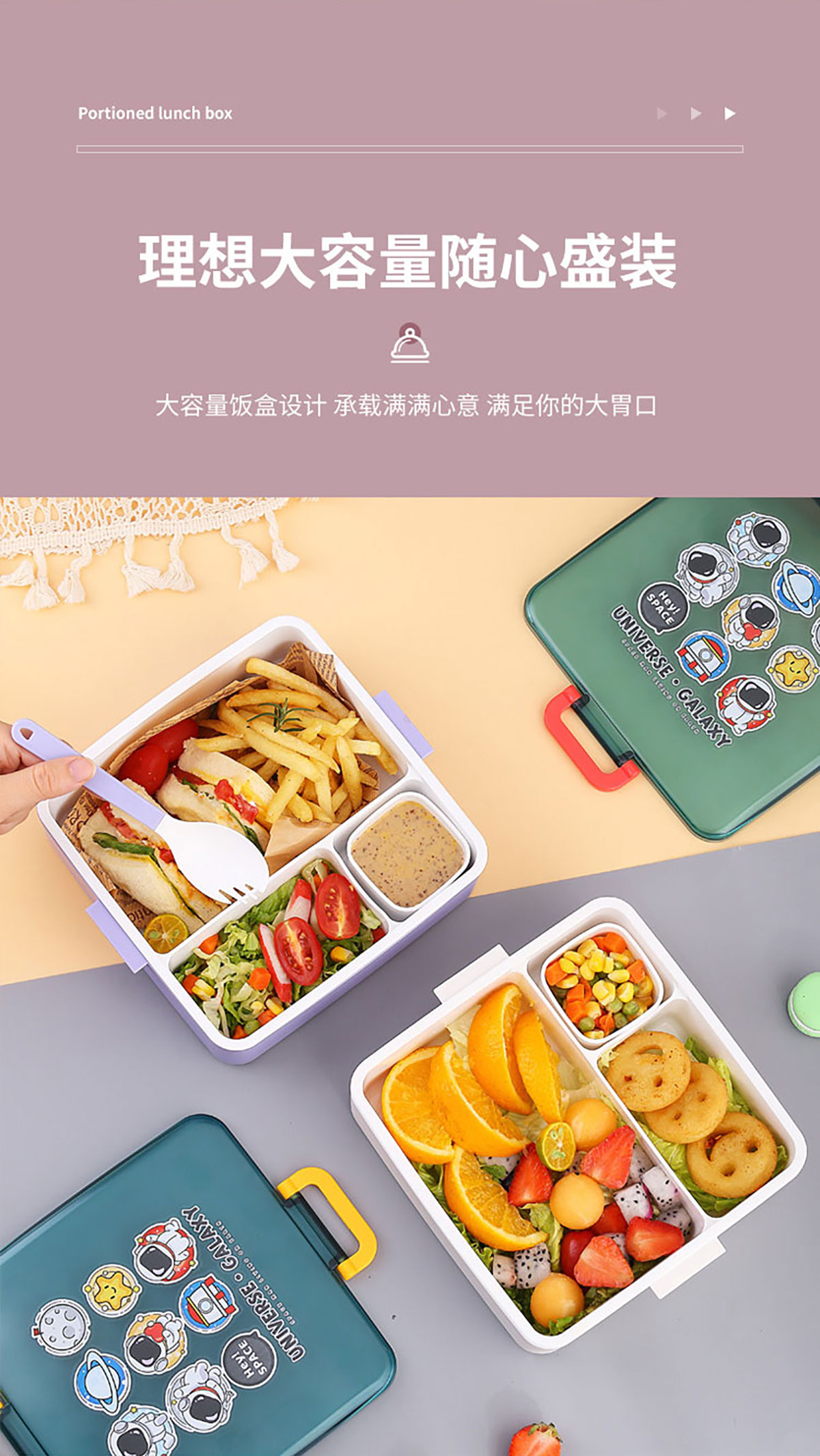 太空干飯人方形分格飯盒1300ml