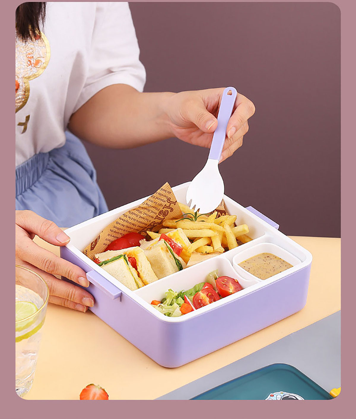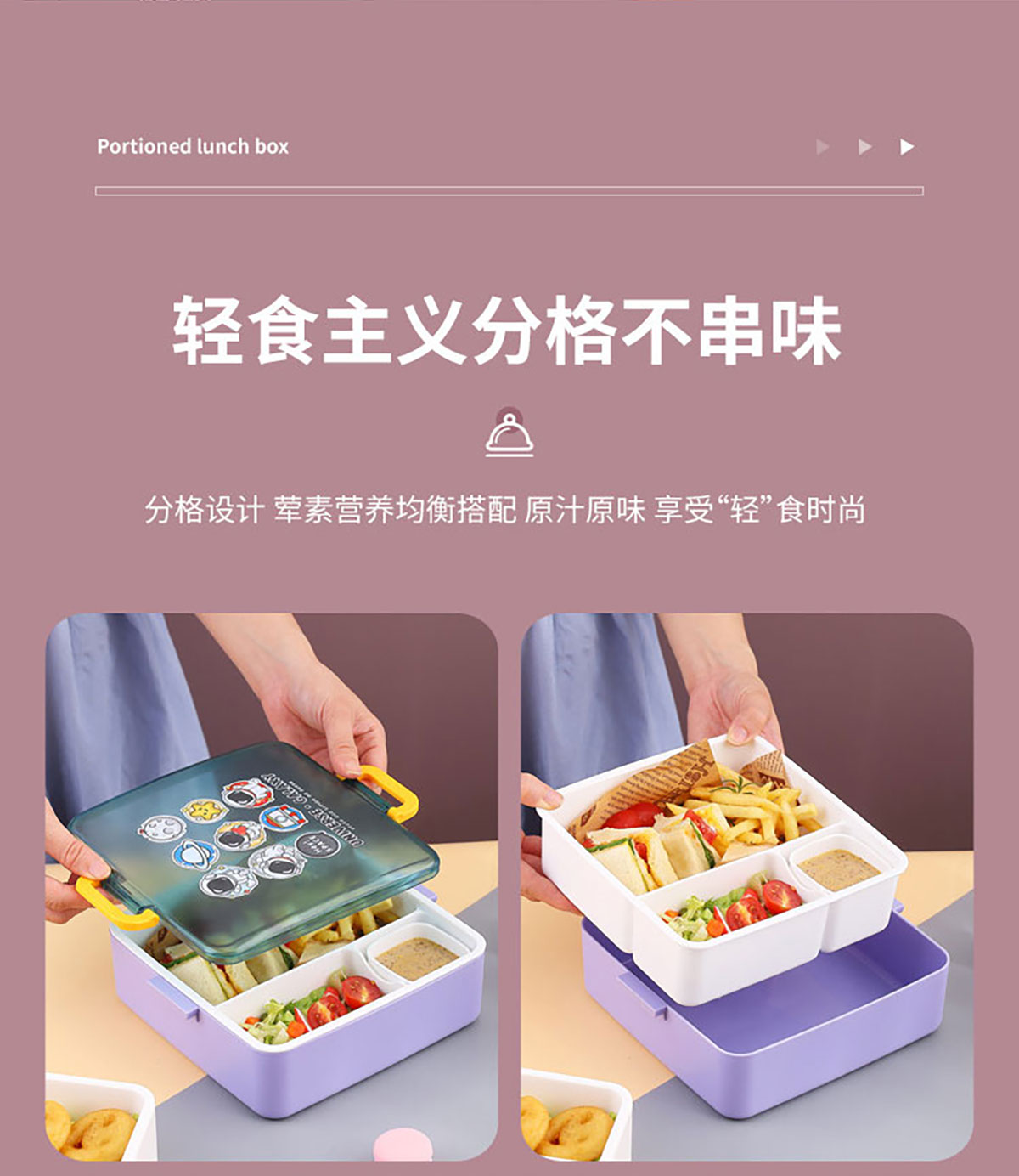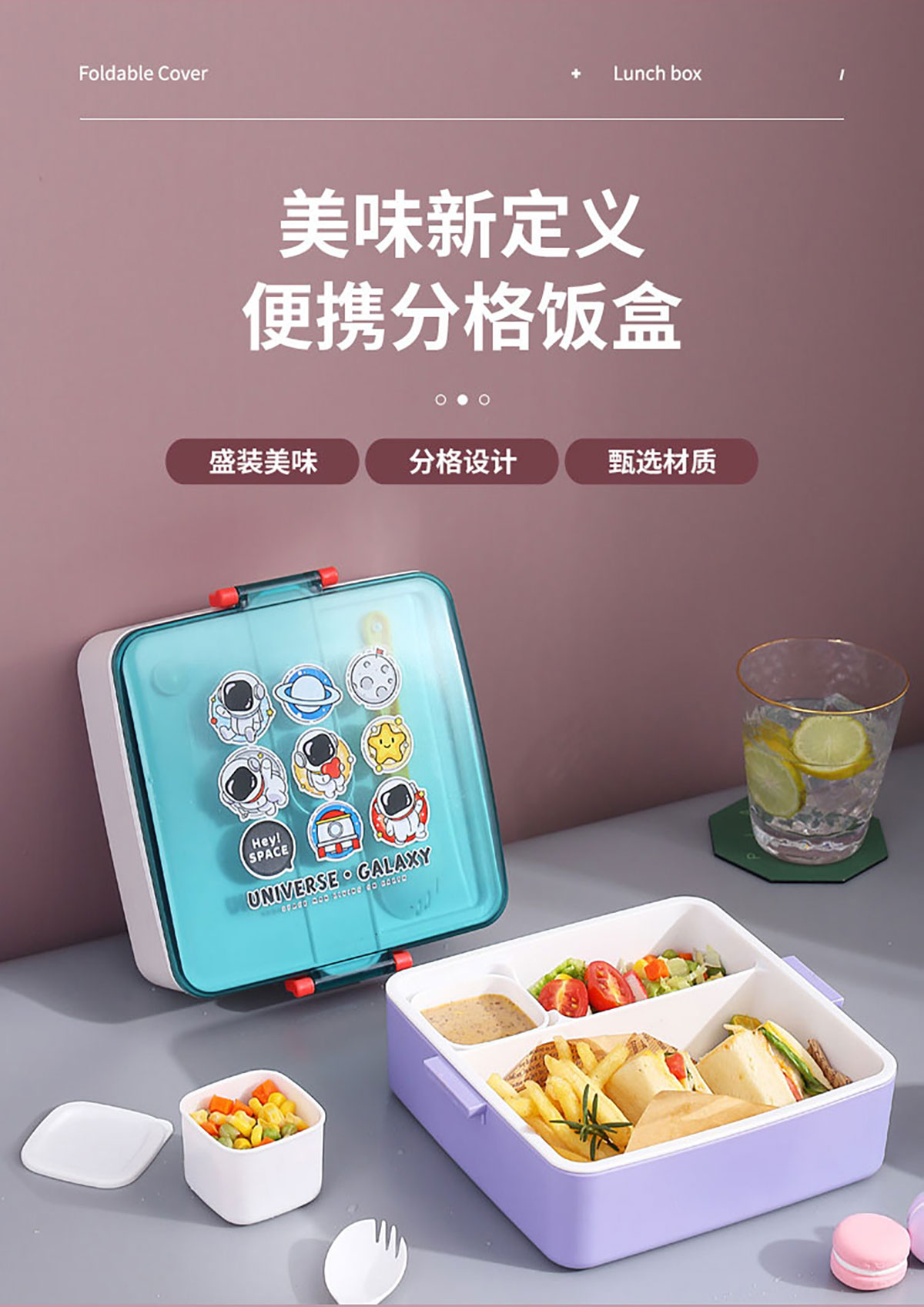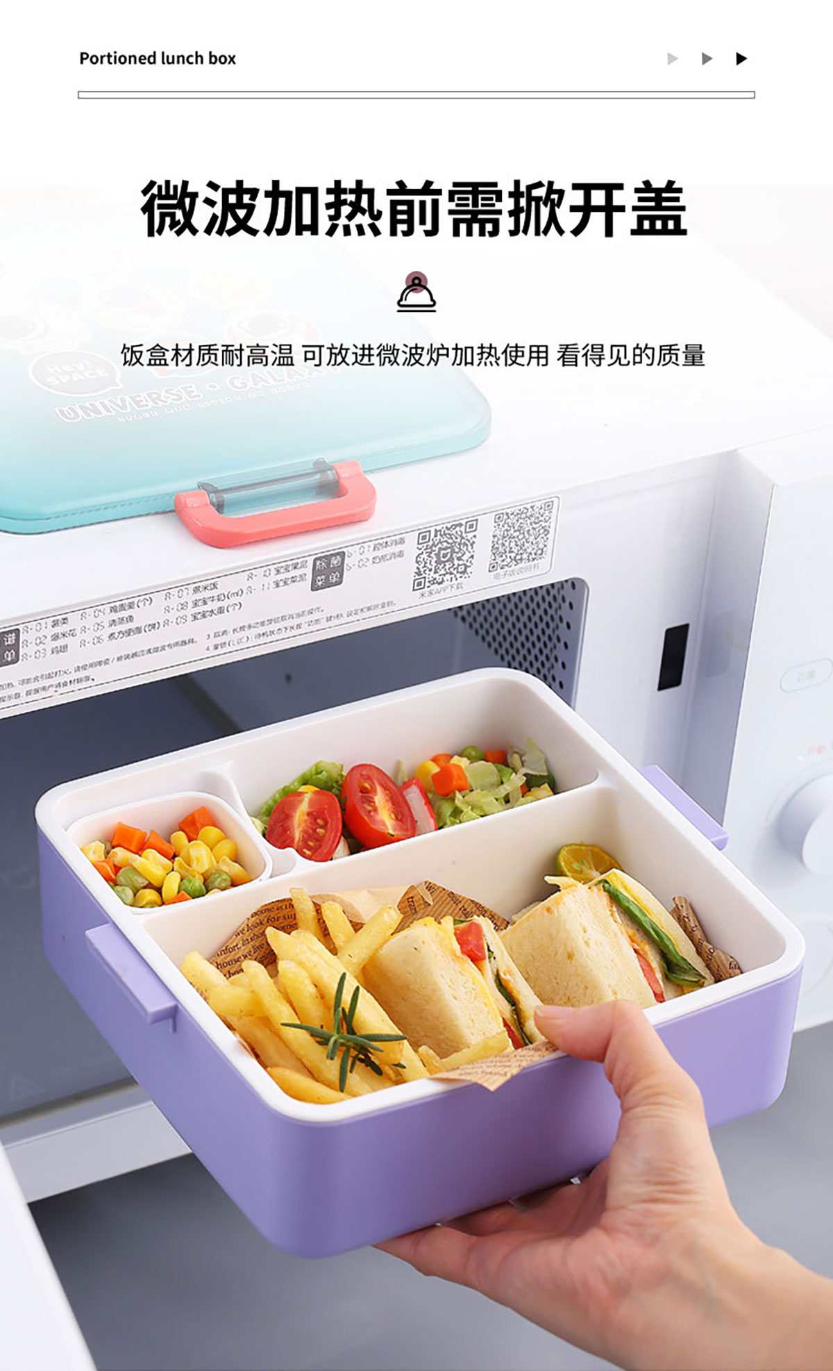 太空干飯人方形分格飯盒1300ml