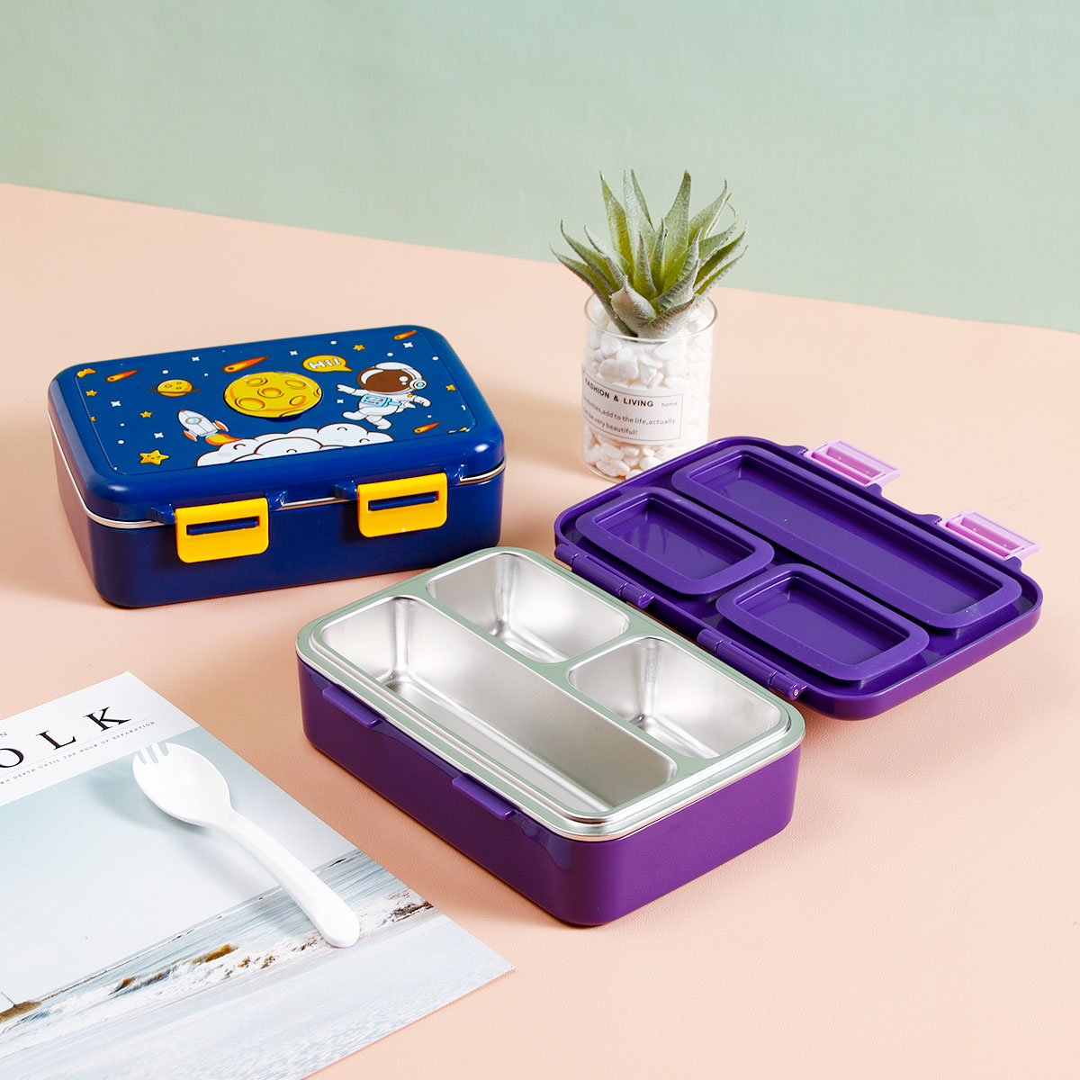 悠悅樂(lè)漫三格不銹鋼便當(dāng)盒(550ml) 2023年新色