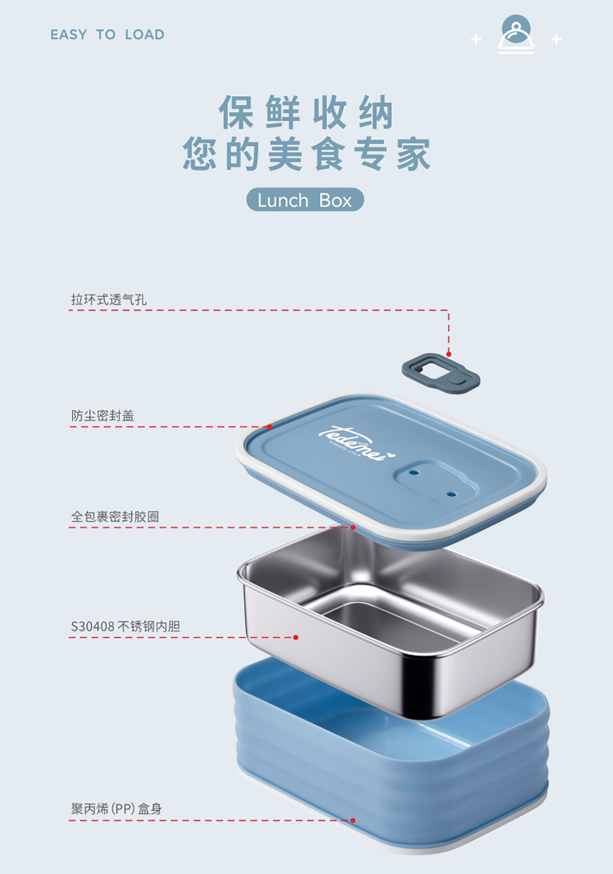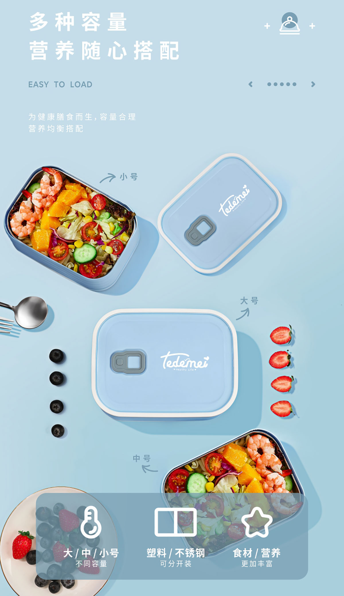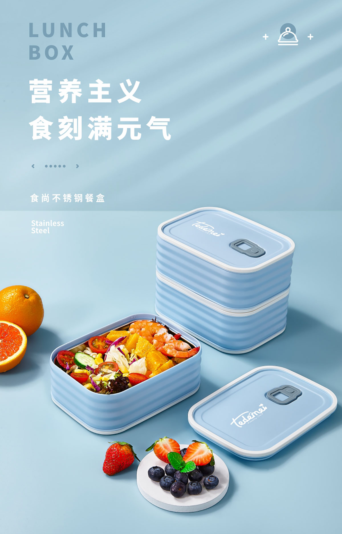 食尚不銹鋼餐盒(小號(hào)580ml/中號(hào)950ml/大號(hào)1.5L)
