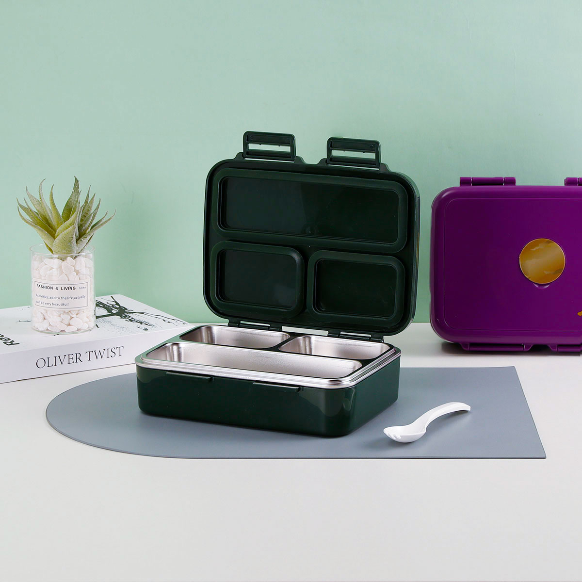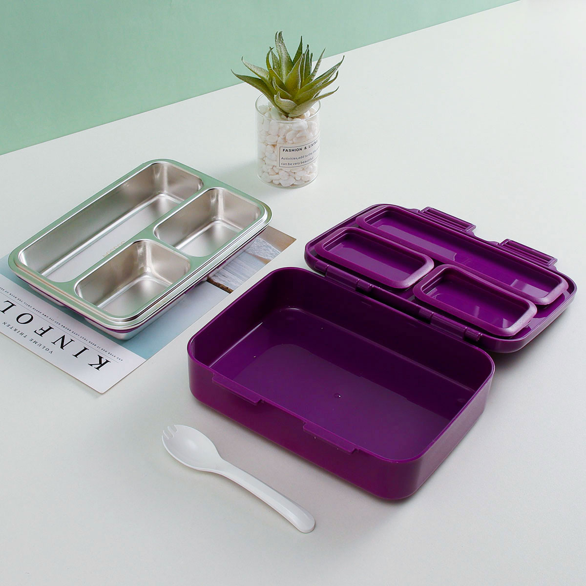 悠悅樂漫大號三格不銹鋼便當(dāng)盒(790ml) 2023新色