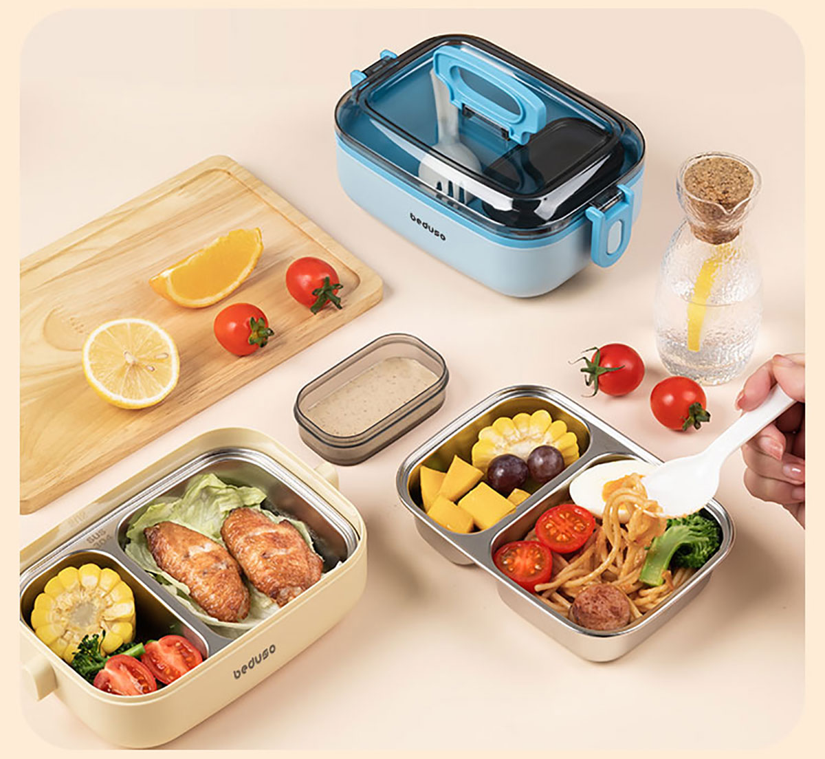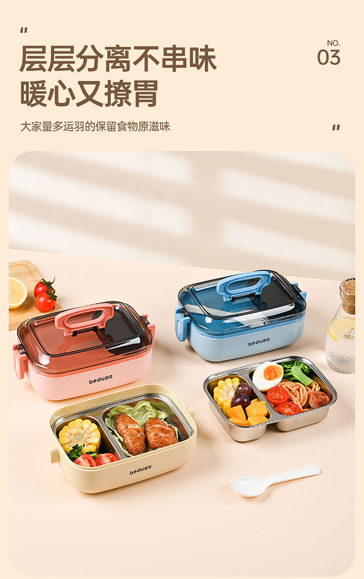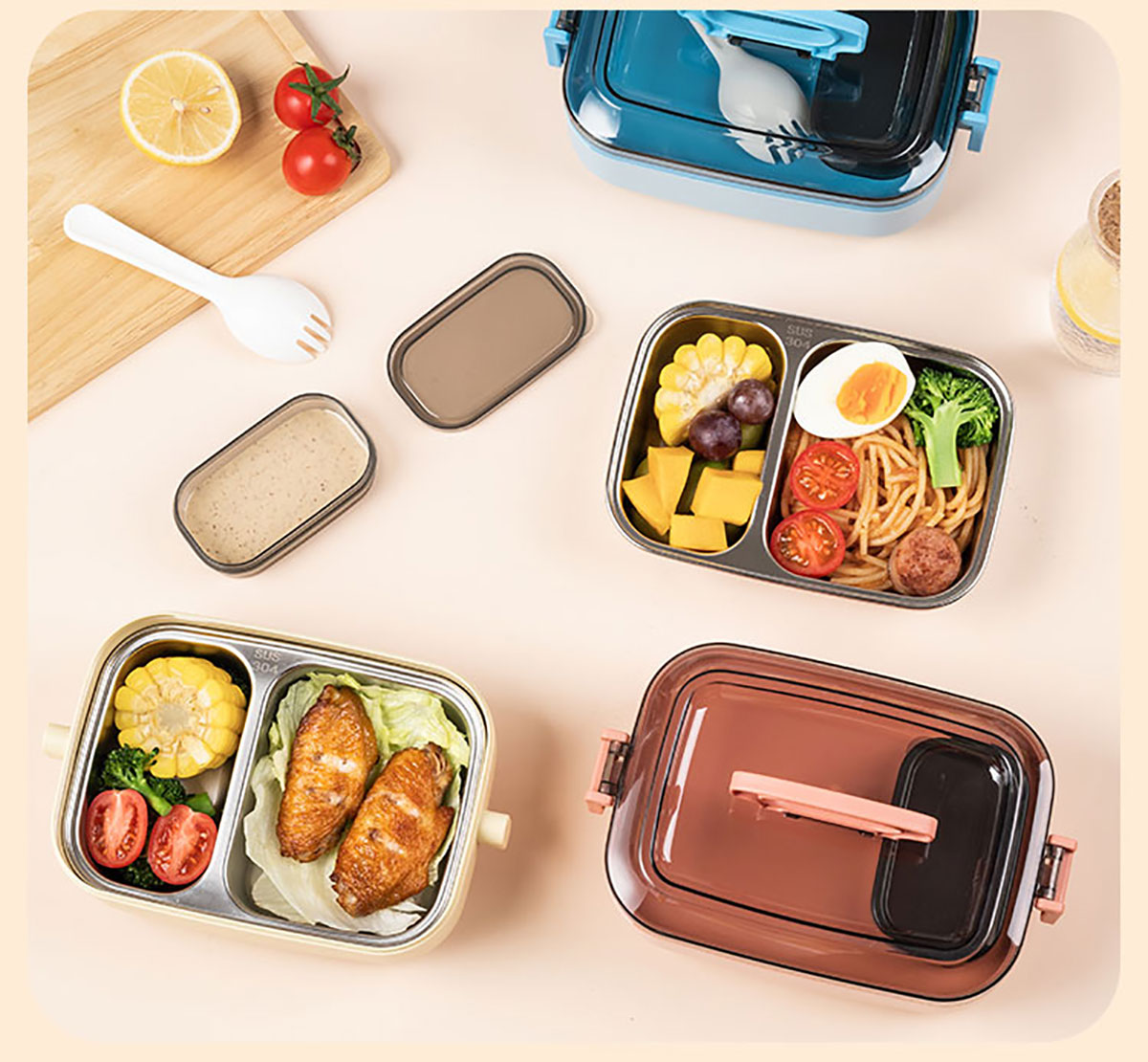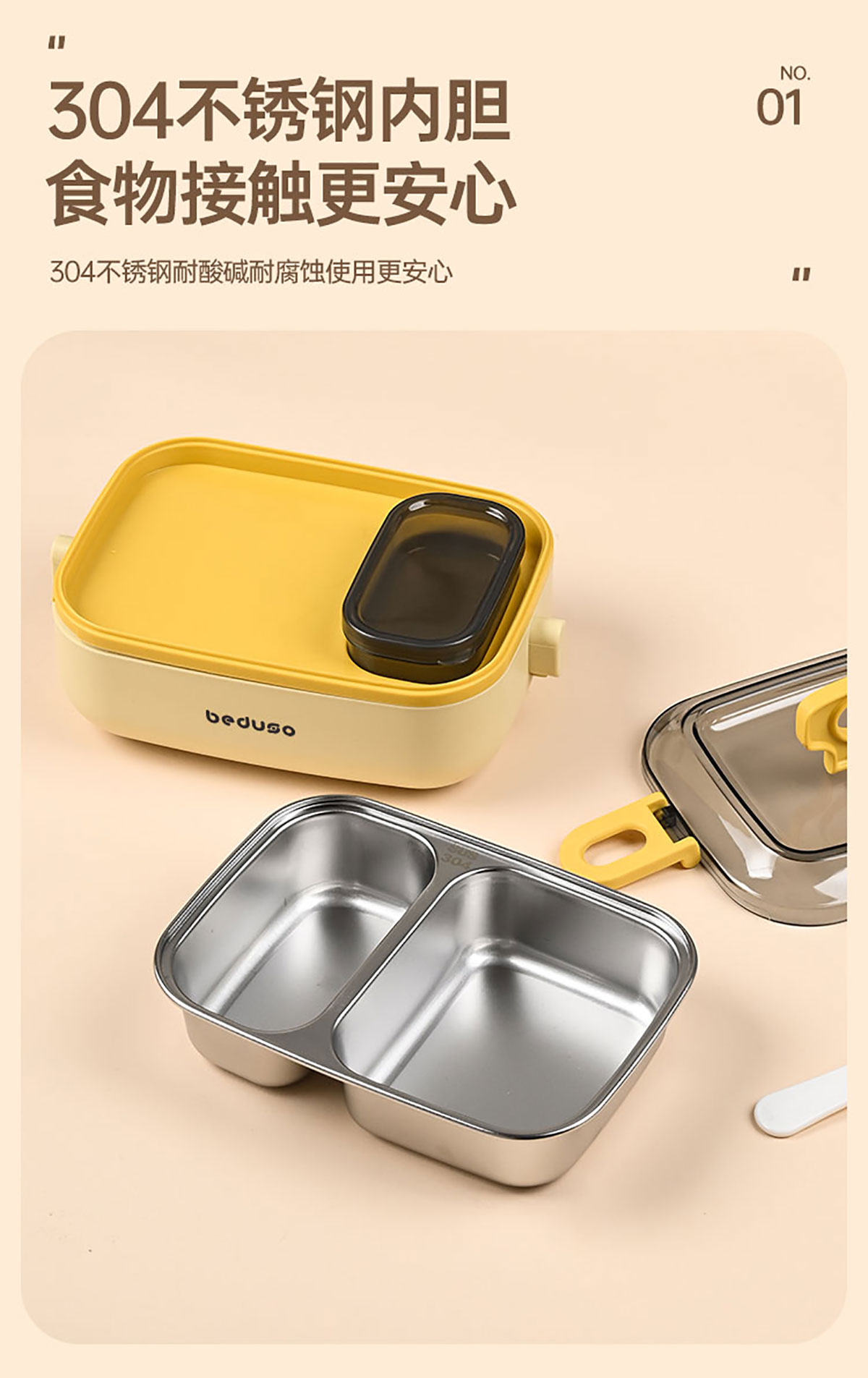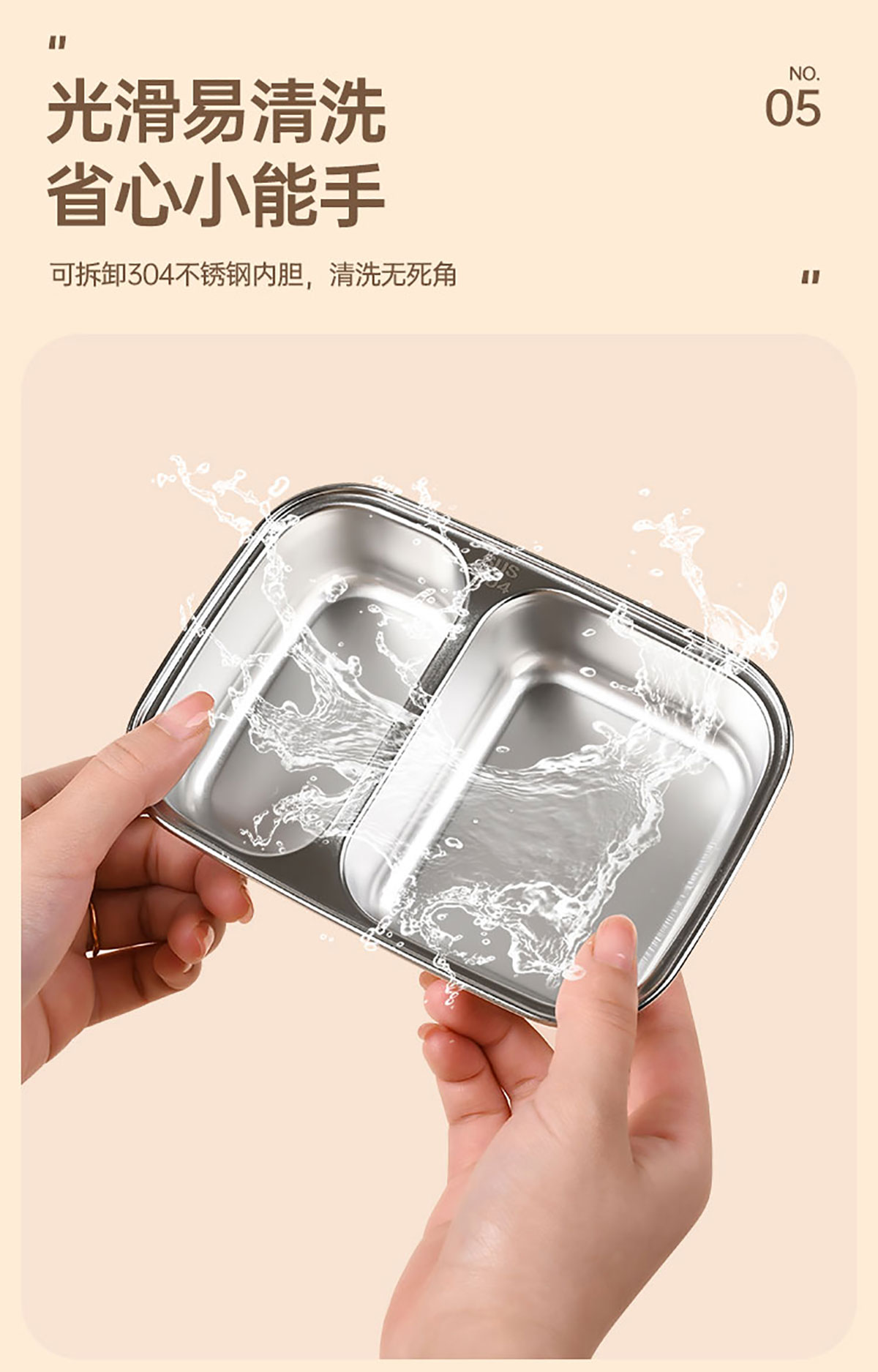 長方形分格不銹鋼便當盒500ml