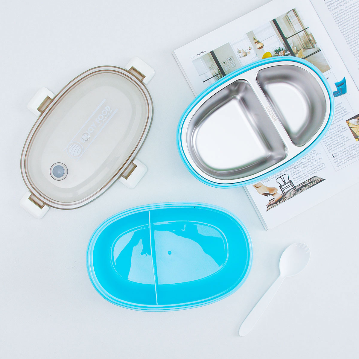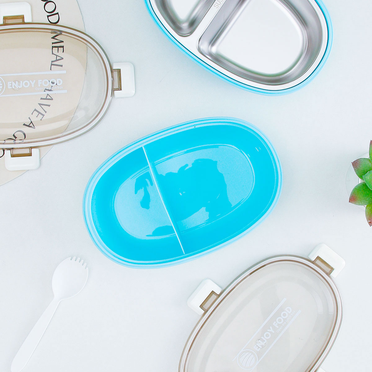 蛋型印花不銹鋼/塑料飯盒