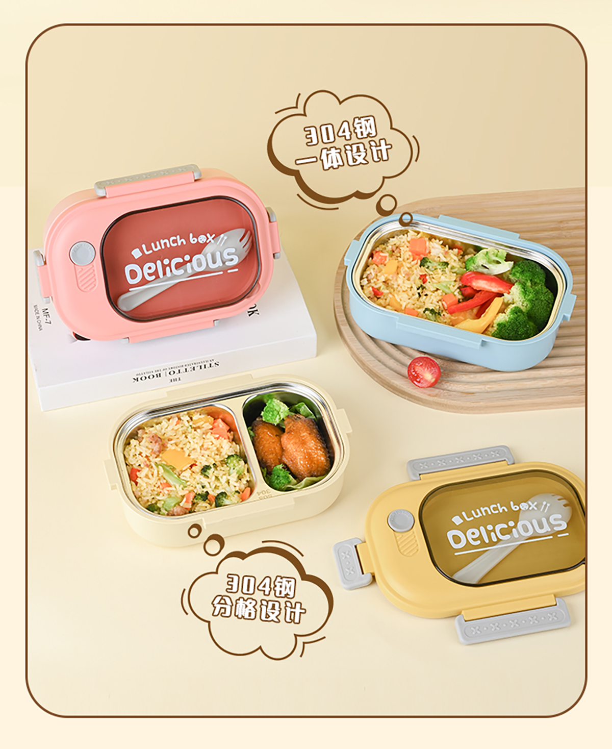 長(zhǎng)方形單格/雙格不銹鋼便當(dāng)盒