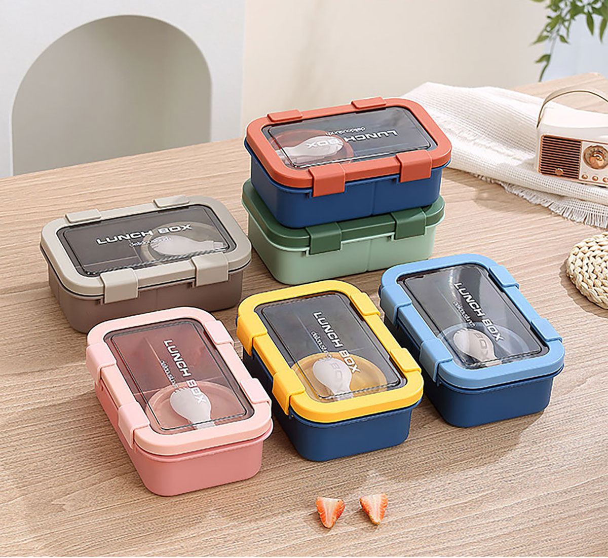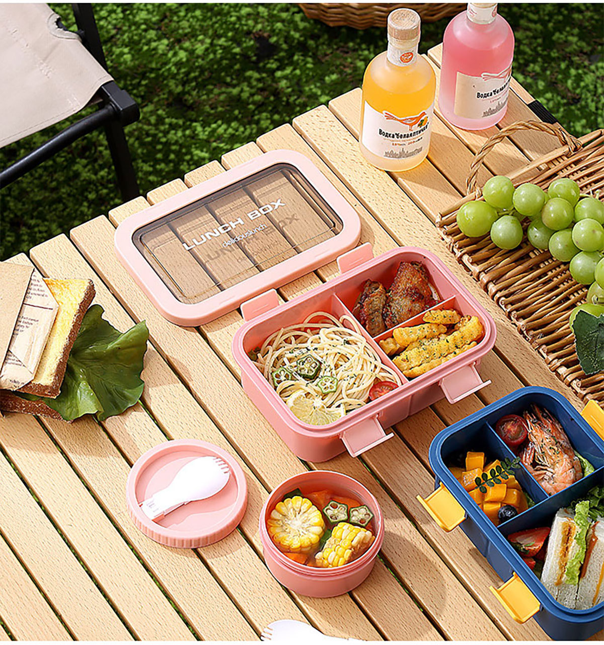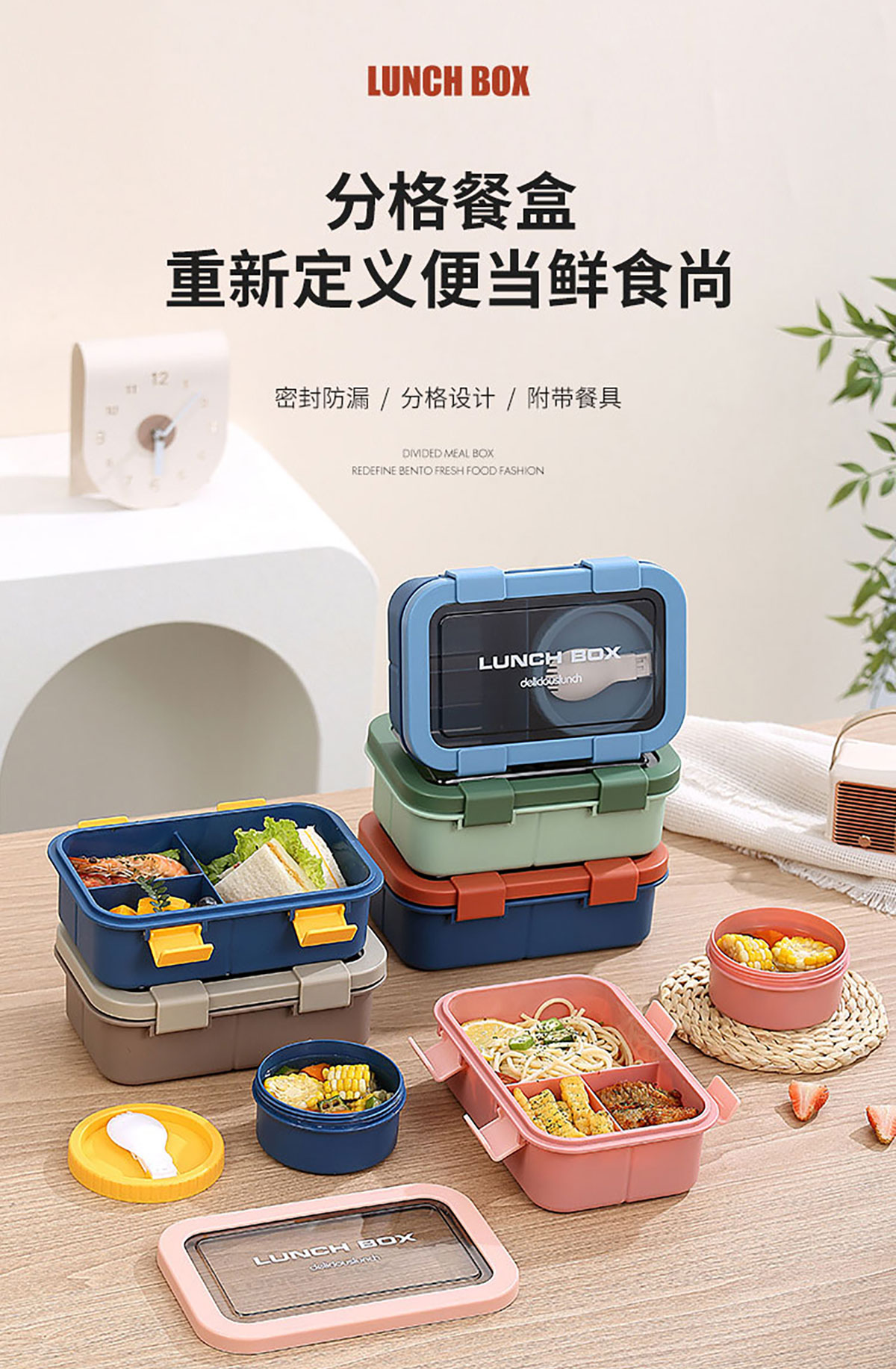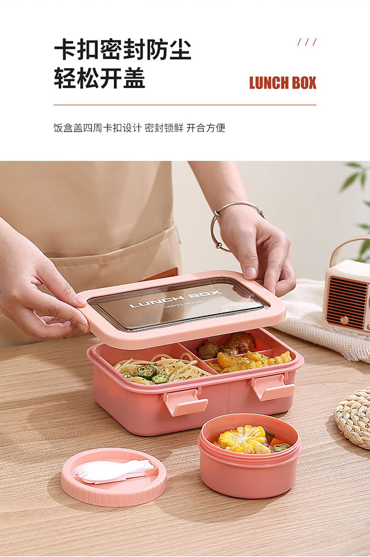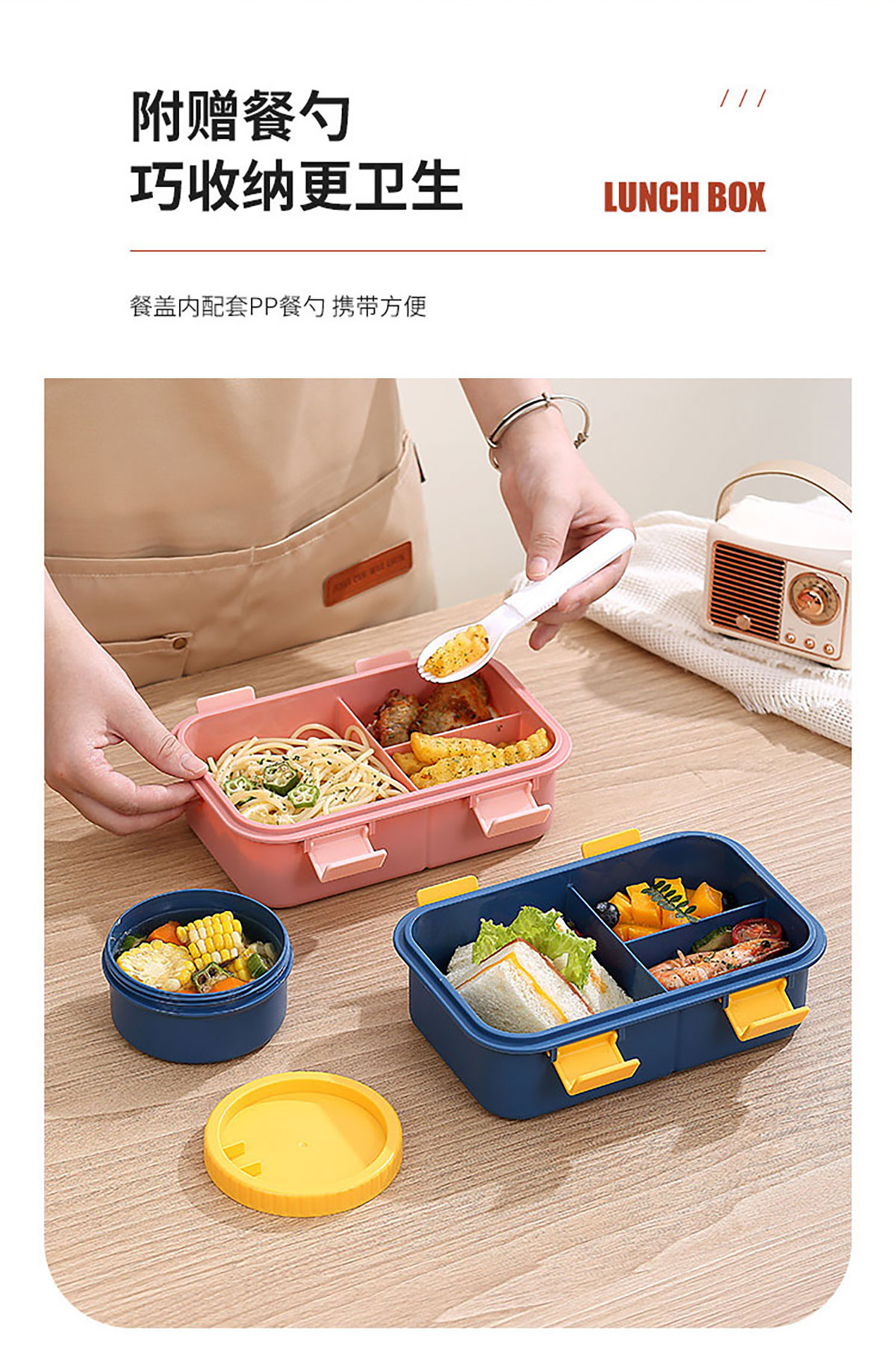 塑料三格分格飯盒1000ml/湯碗250ml