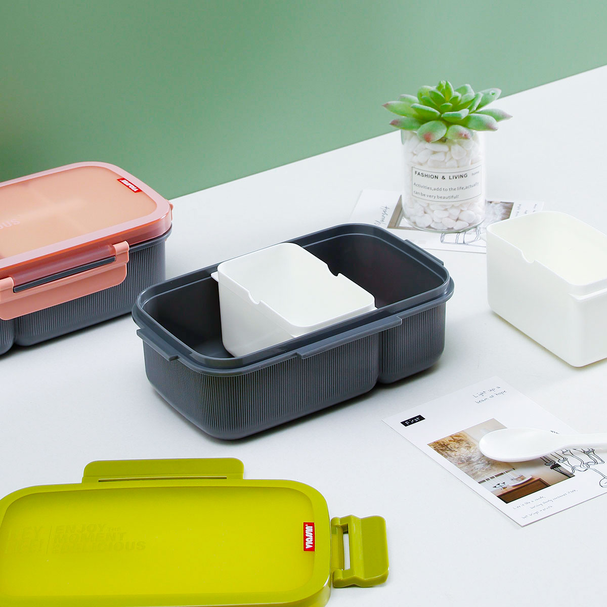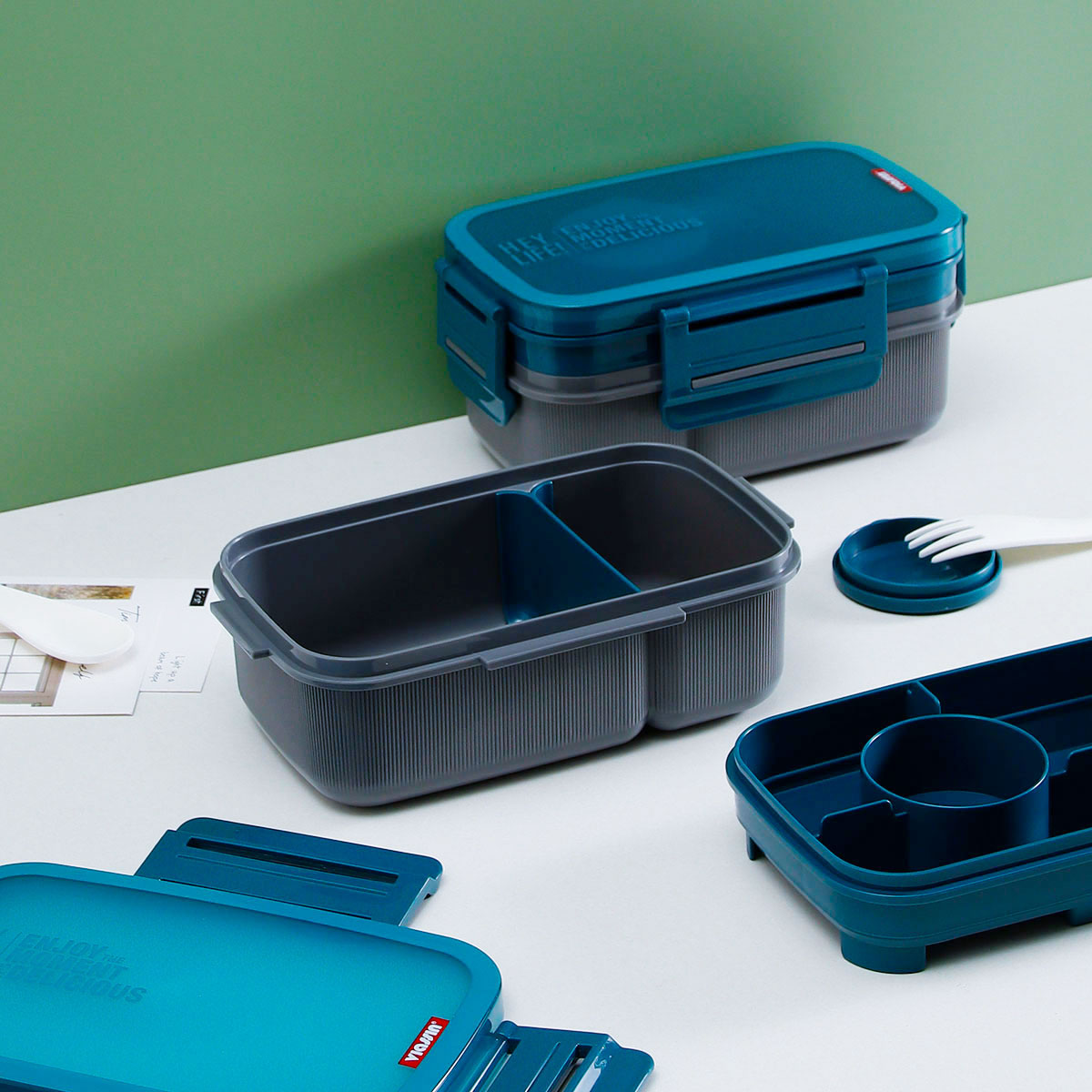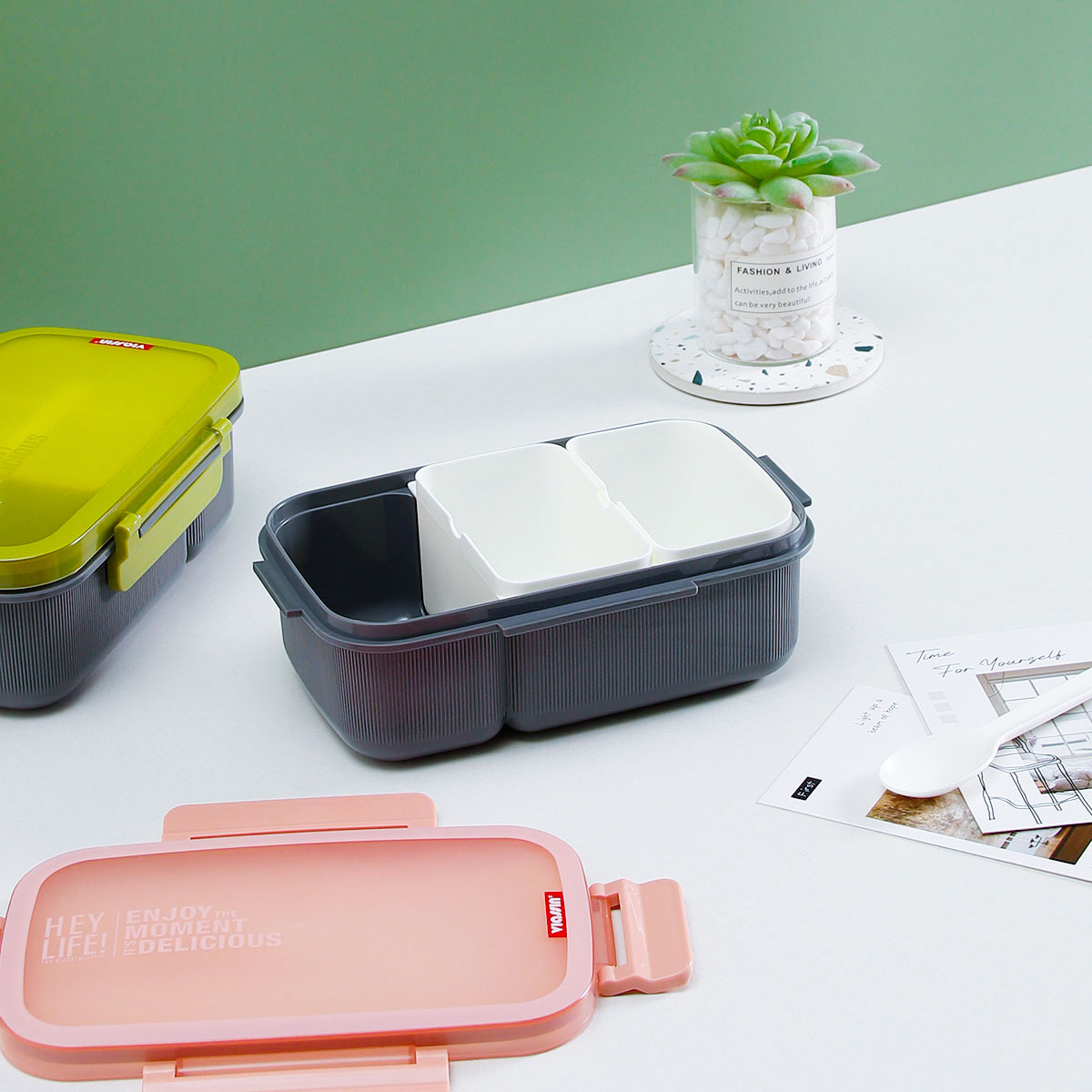 寰彩密封單層3格/雙層6格飯盒(長方高款)+運動水壺套裝/單個