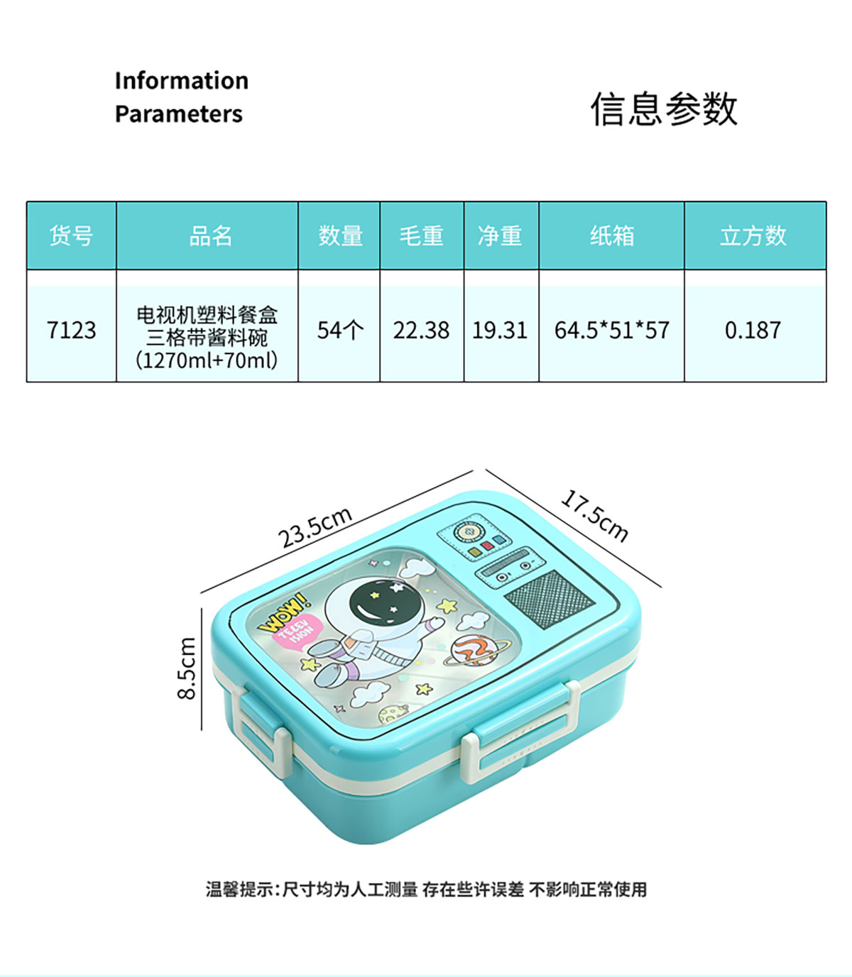 Size: 235*175*85mm/1270ml+70ml