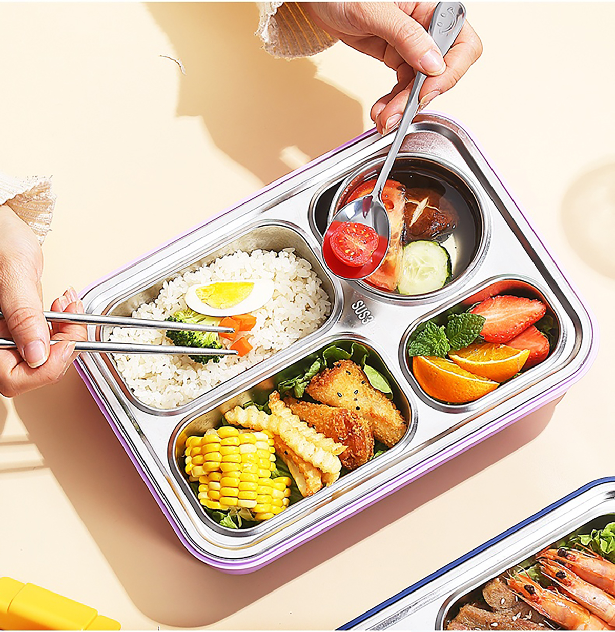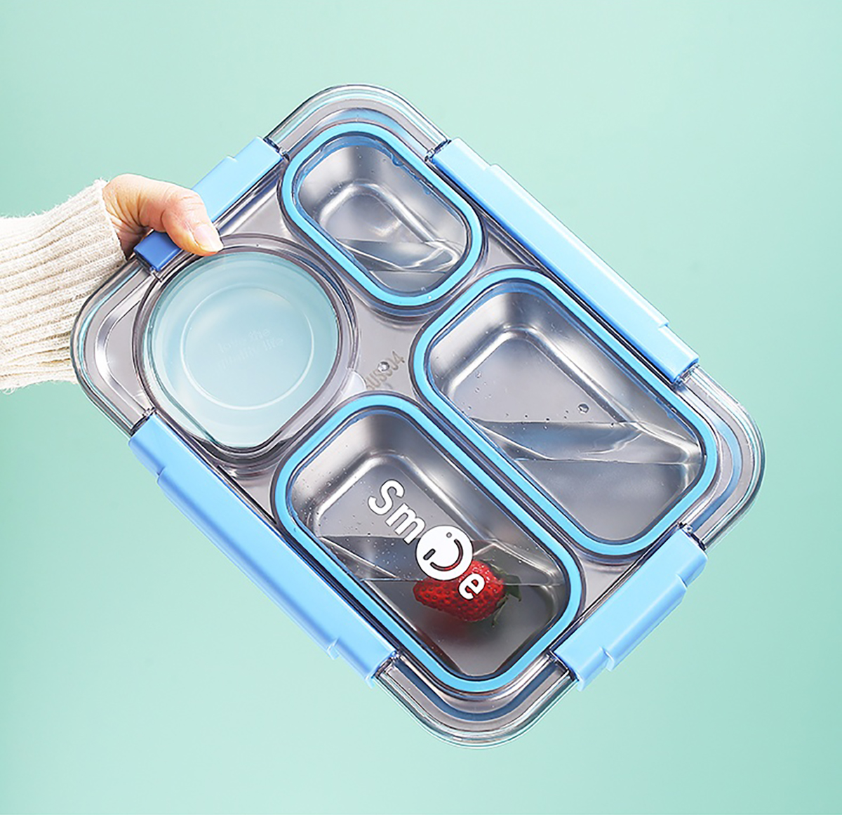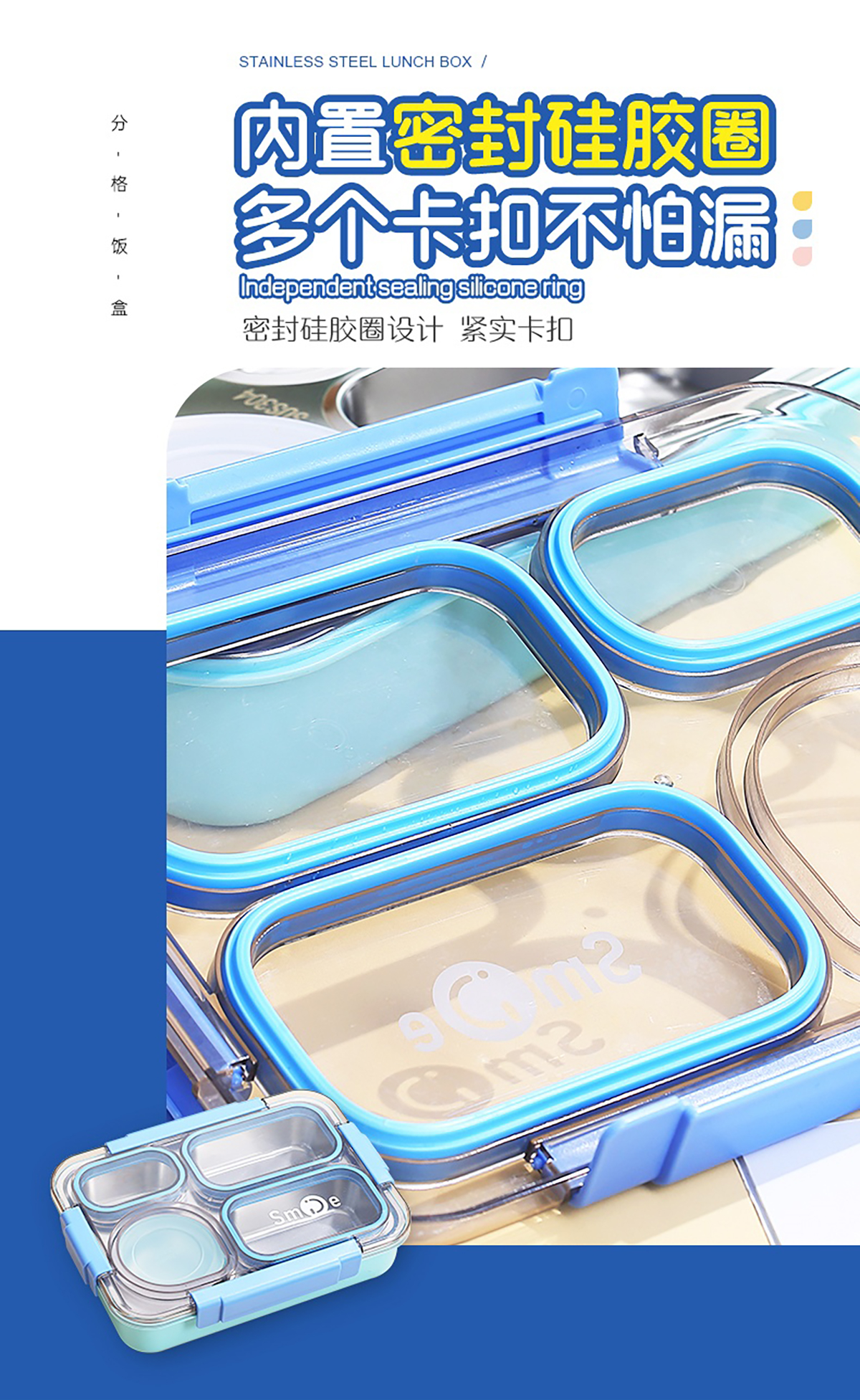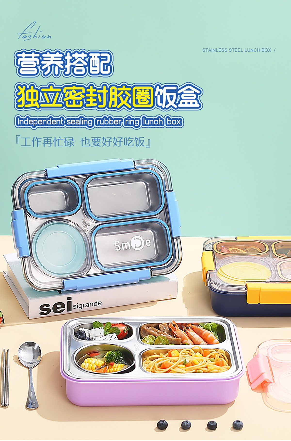 900ml獨(dú)立密封不銹鋼餐盒(4格+不銹鋼碗150ml+不銹鋼勺筷)