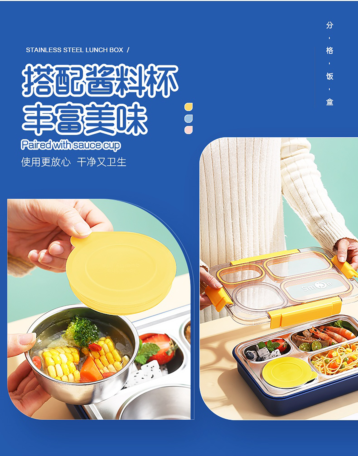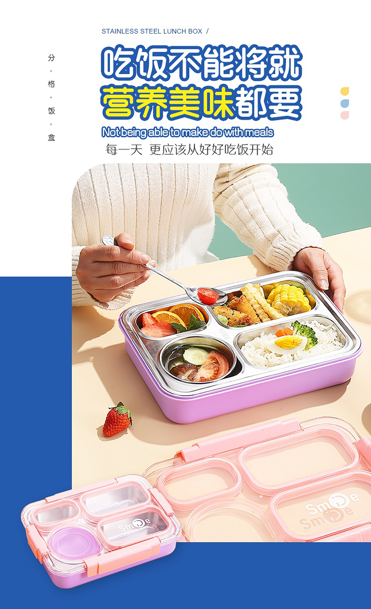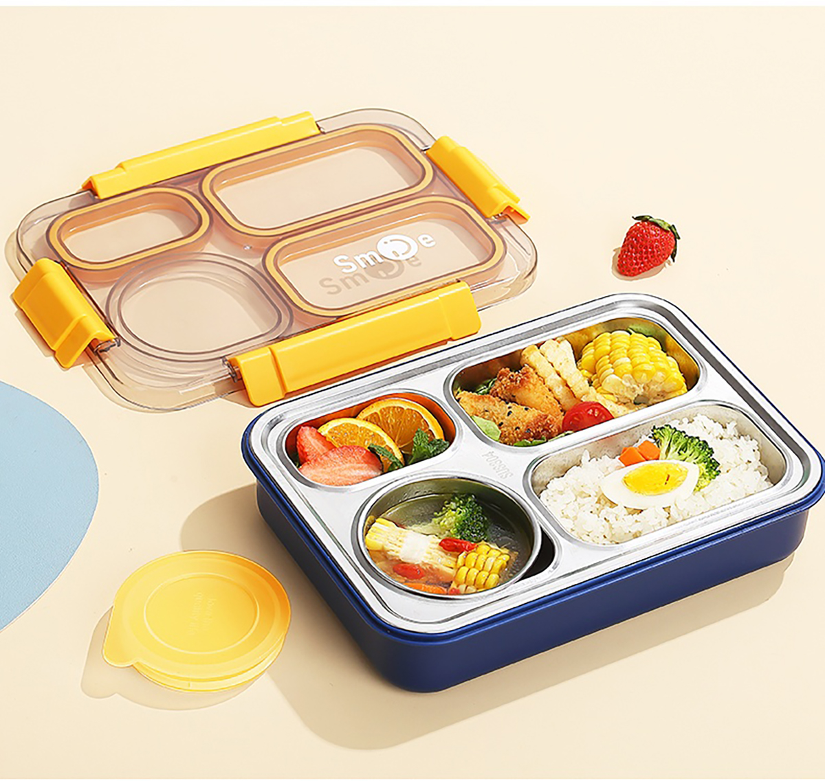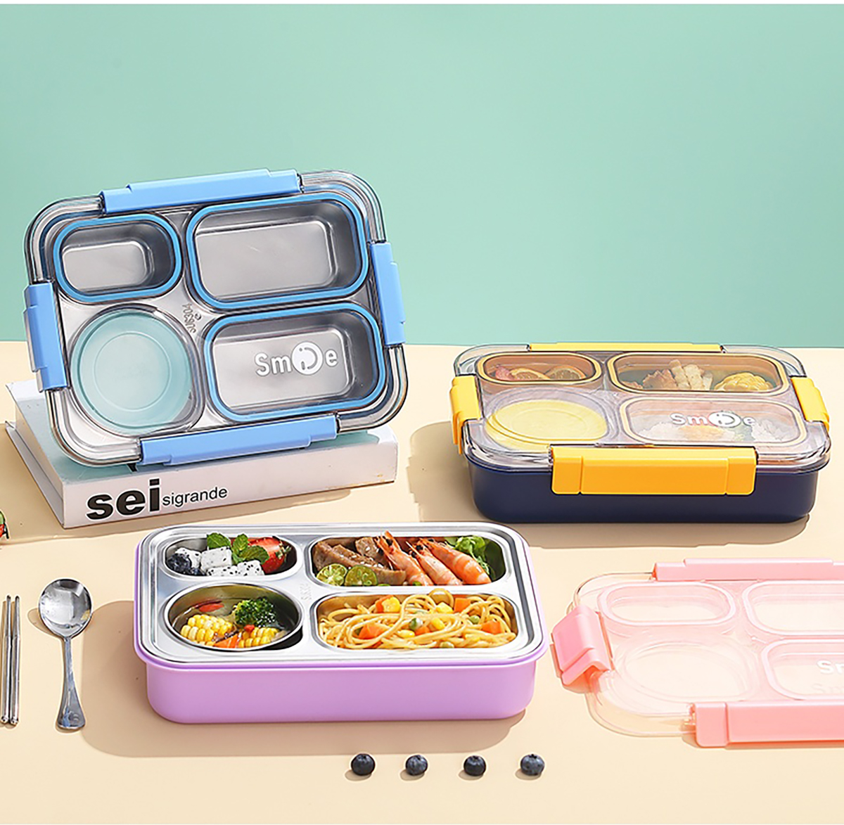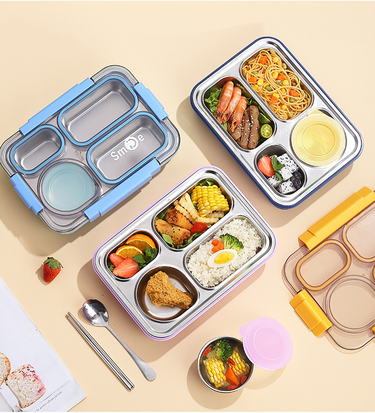 900ml獨(dú)立密封不銹鋼餐盒(4格+不銹鋼碗150ml+不銹鋼勺筷)