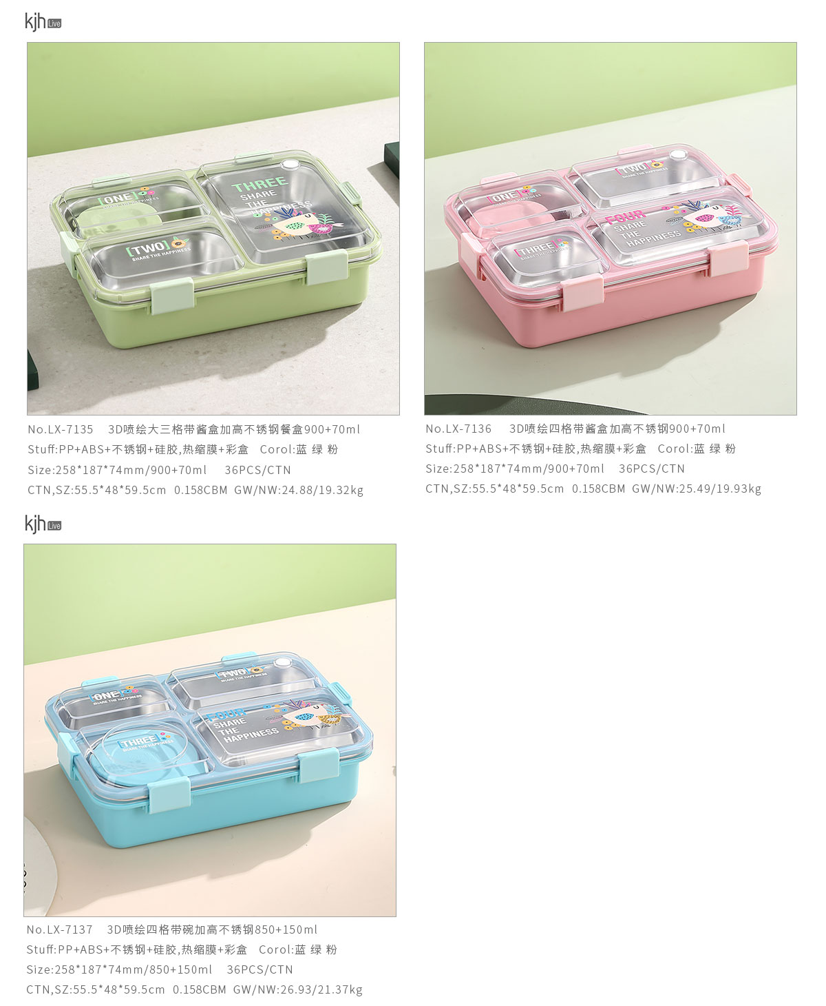 LX-7135(大三格帶醬盒):258*187*74mm/900+70ml
