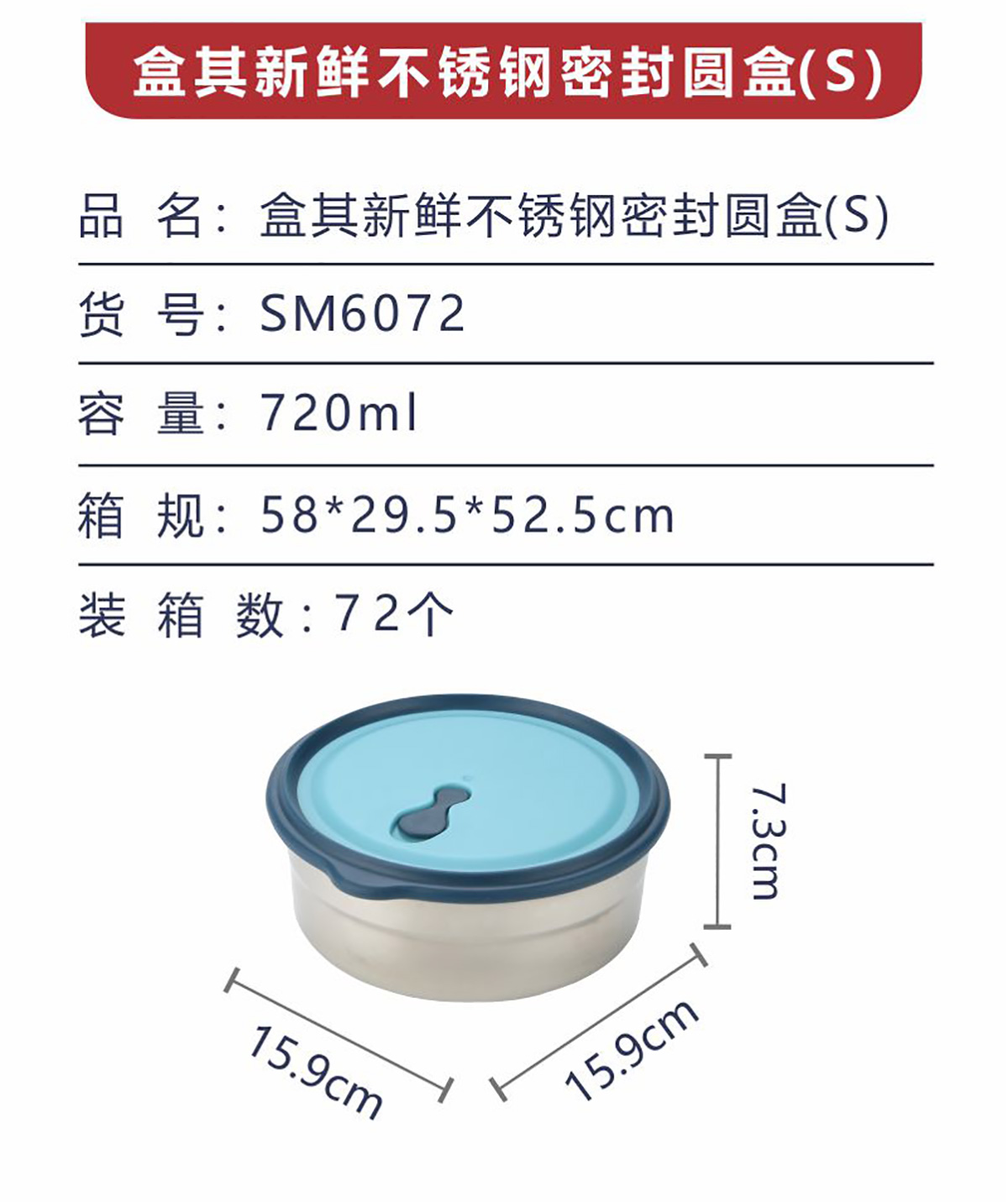 Size: SM-6072(S):155*147*62mm/720ml