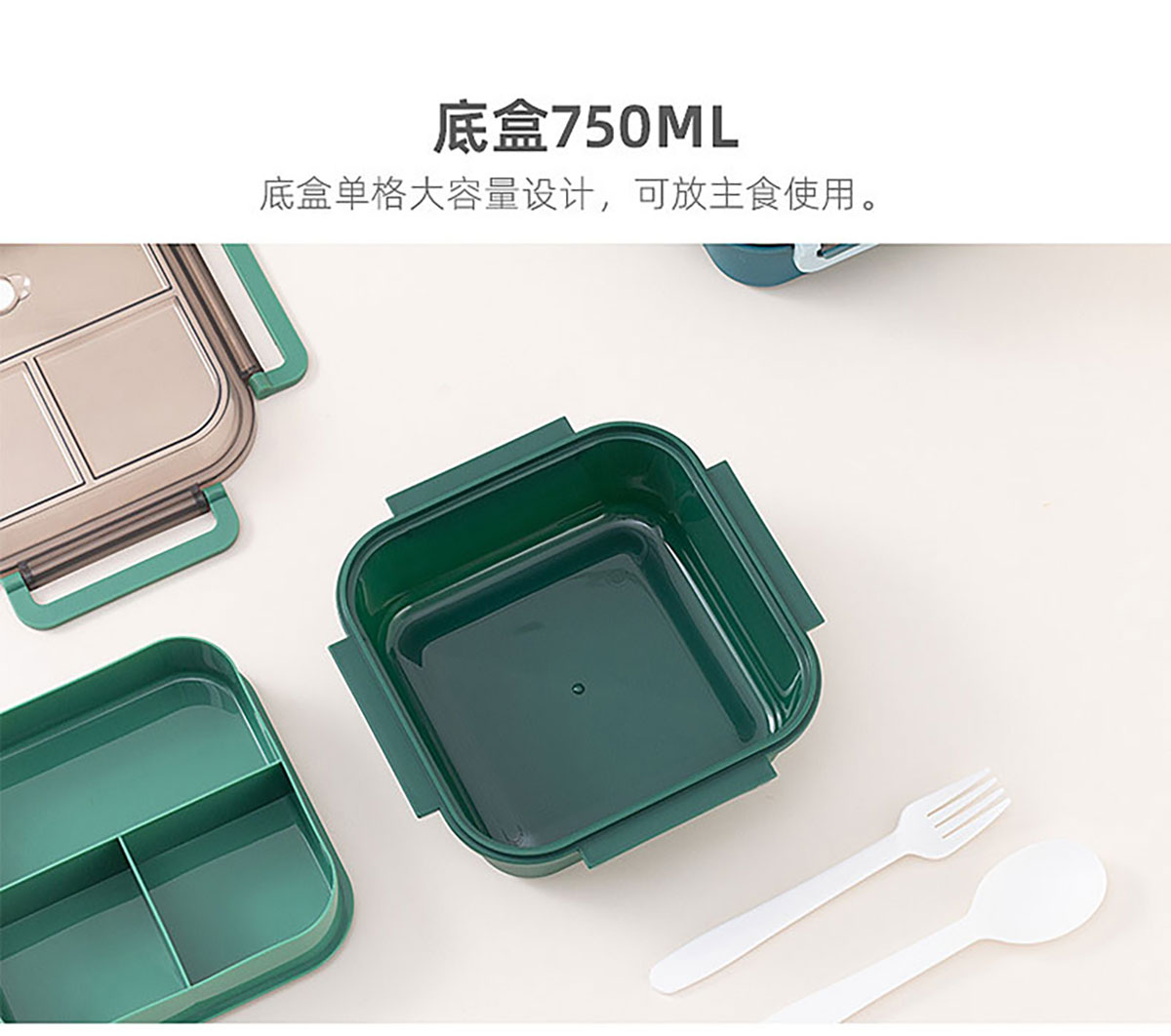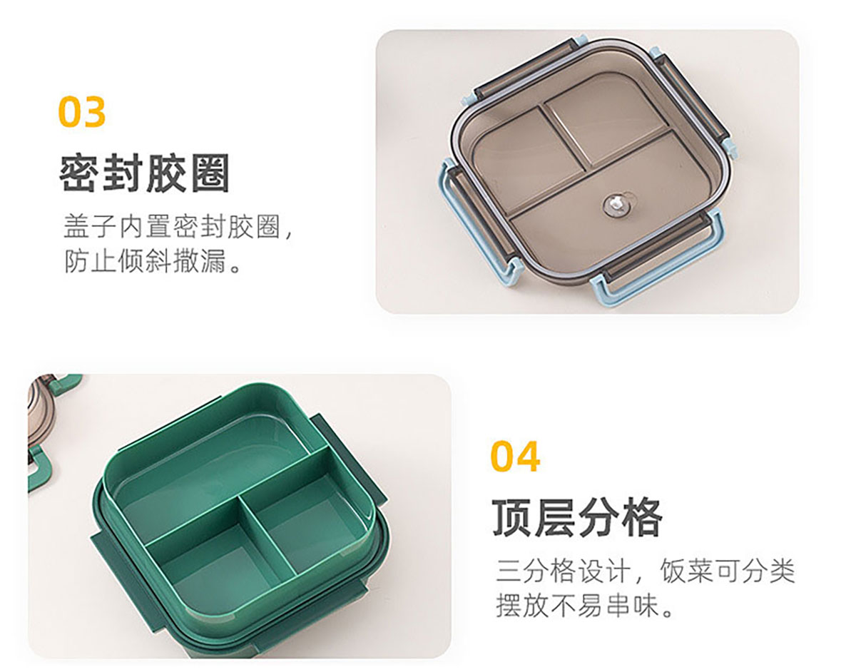 正方雙層分隔飯盒1200ml