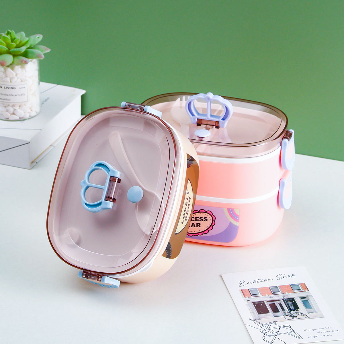 童趣橢圓形單層/雙層便當(dāng)盒