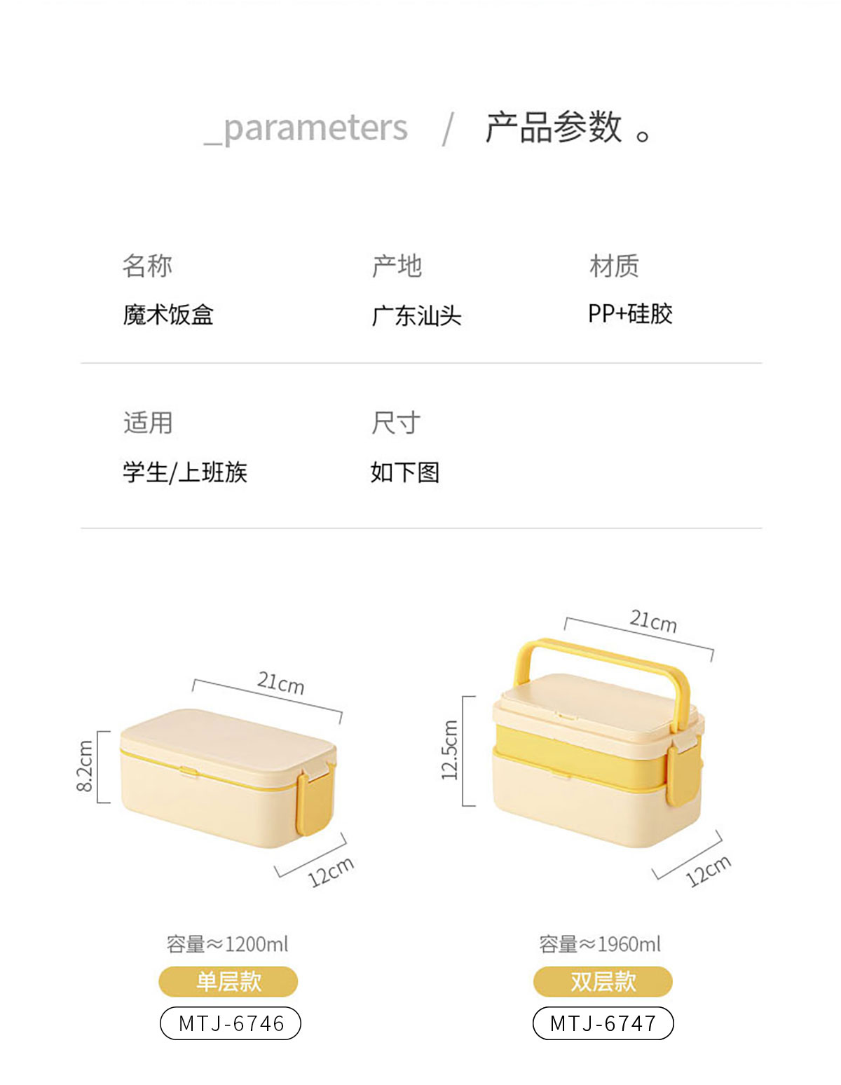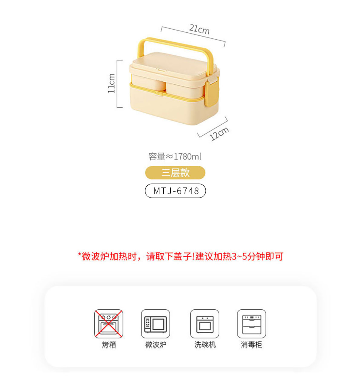 Size: MTJ-6746(單層):210*120*82mm/1200ml