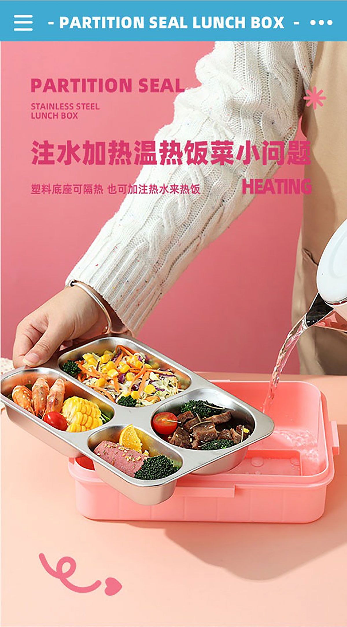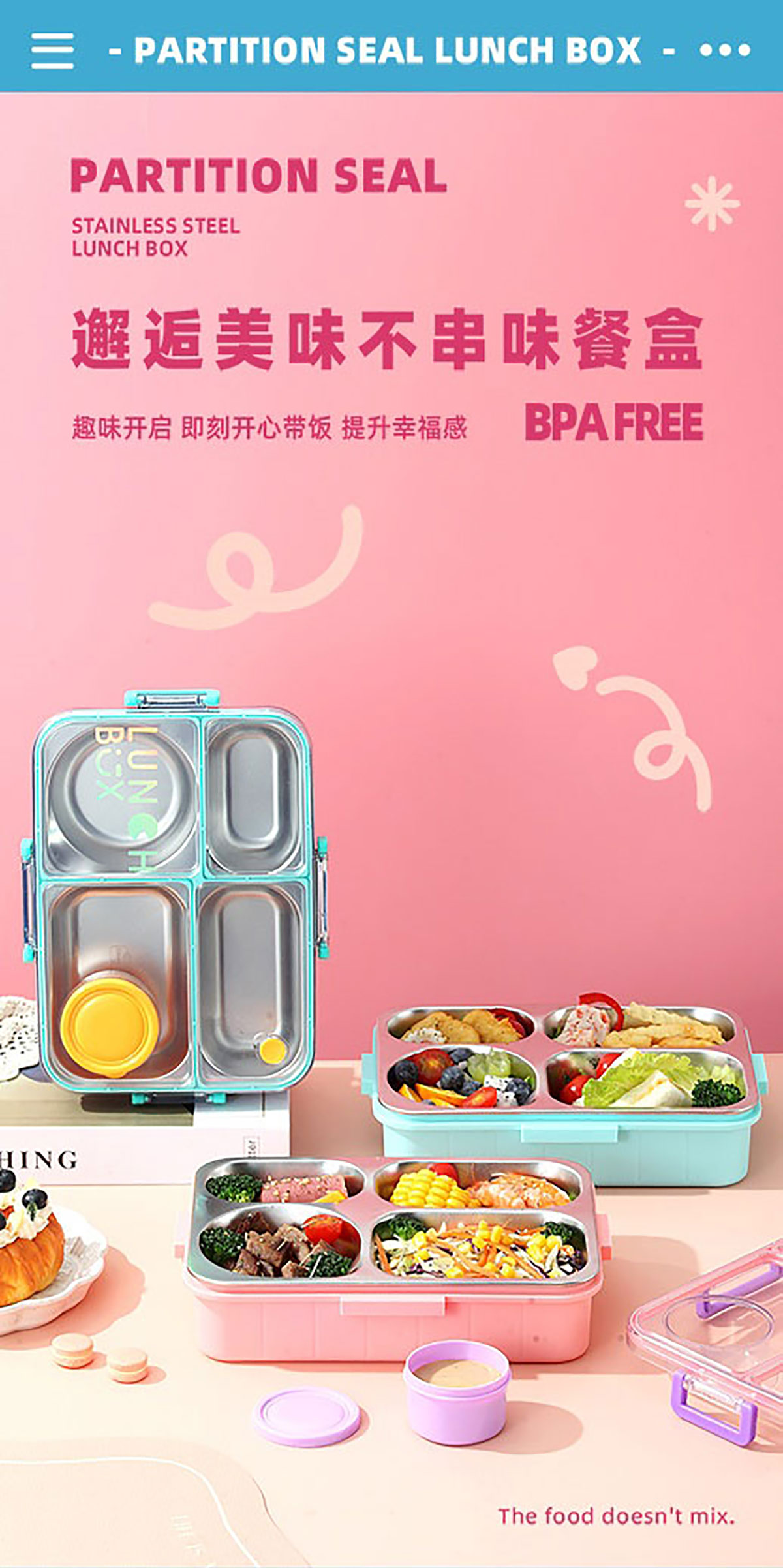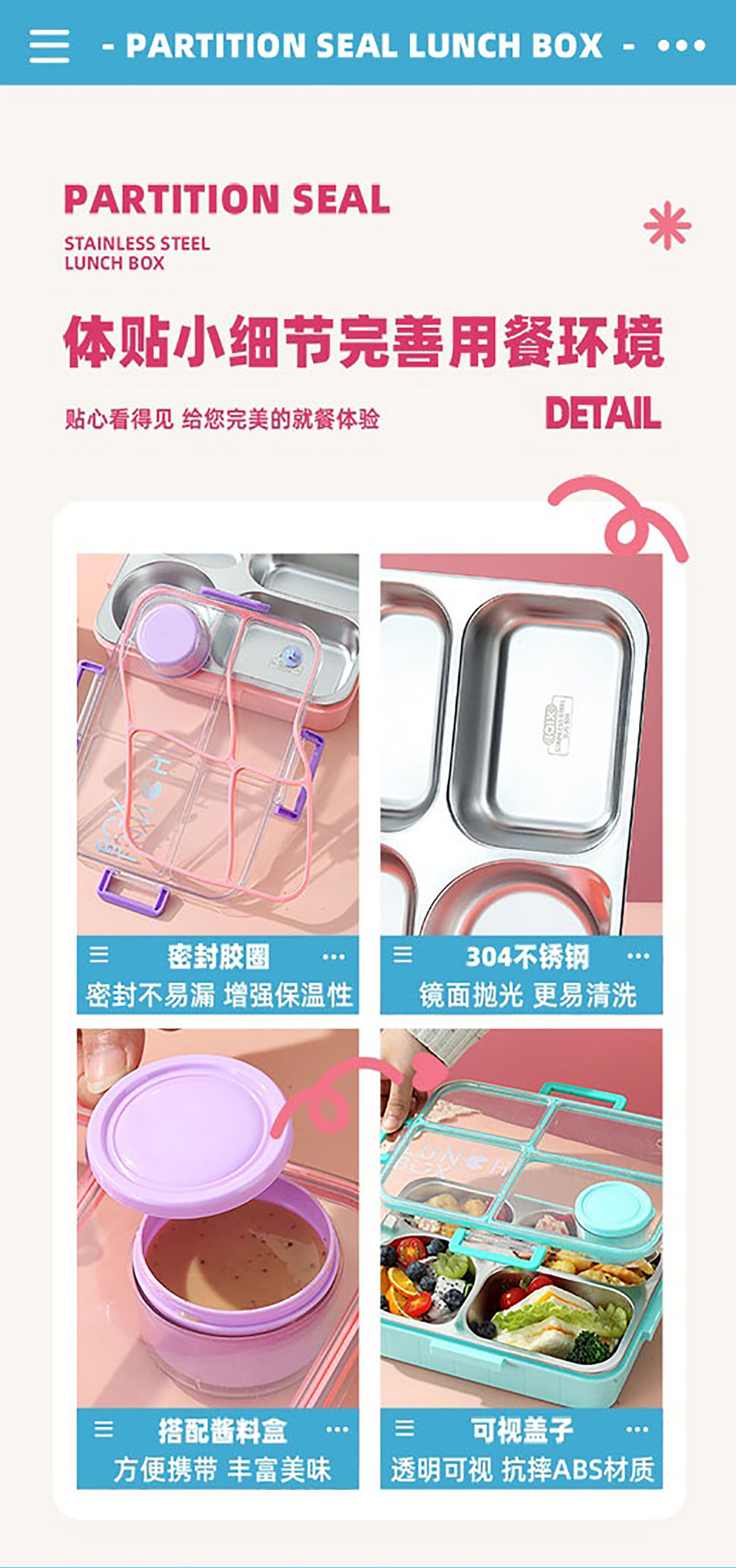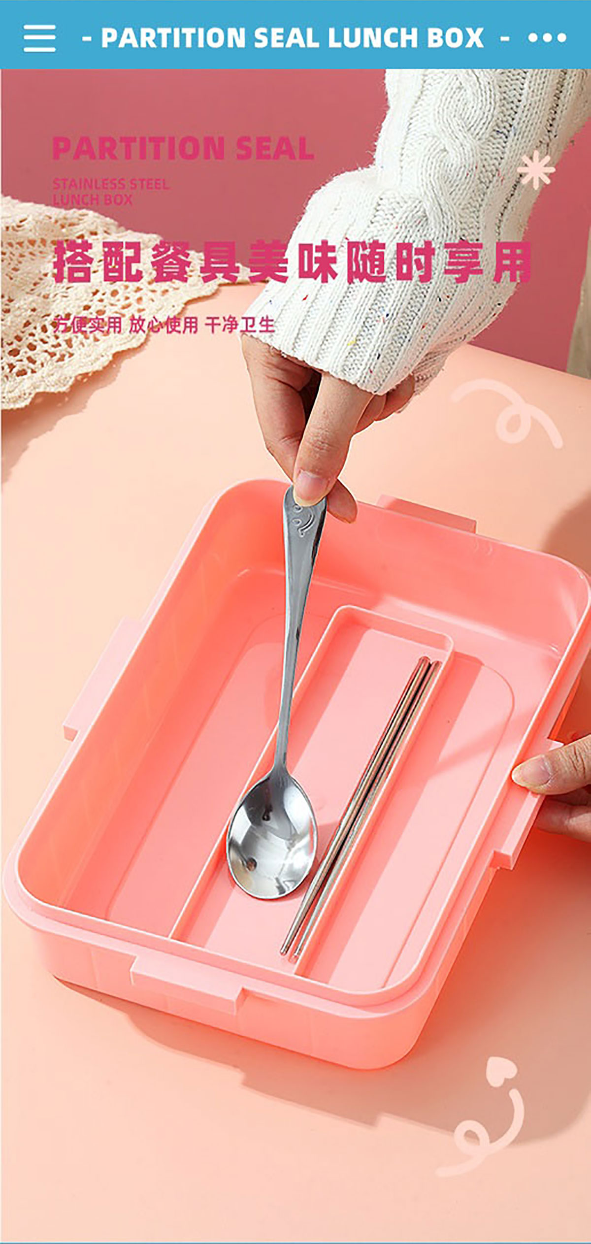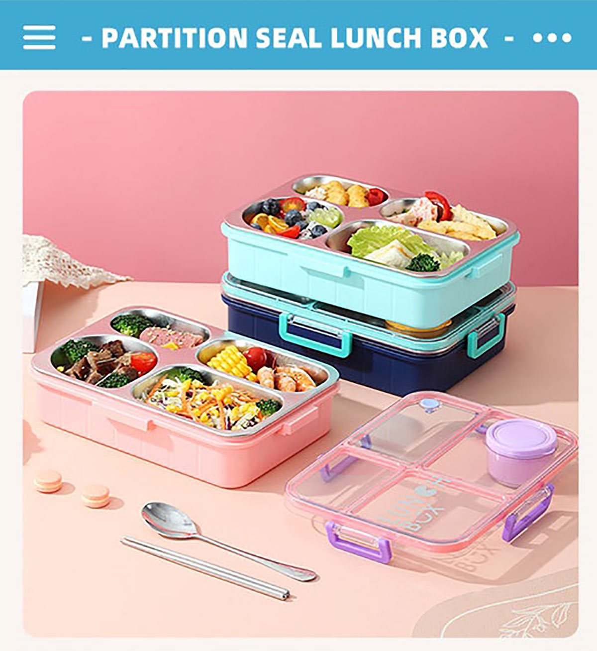 鐳射不串味餐盒(不銹鋼4格900ml+外置醬料杯80ml+不銹鋼勺筷)