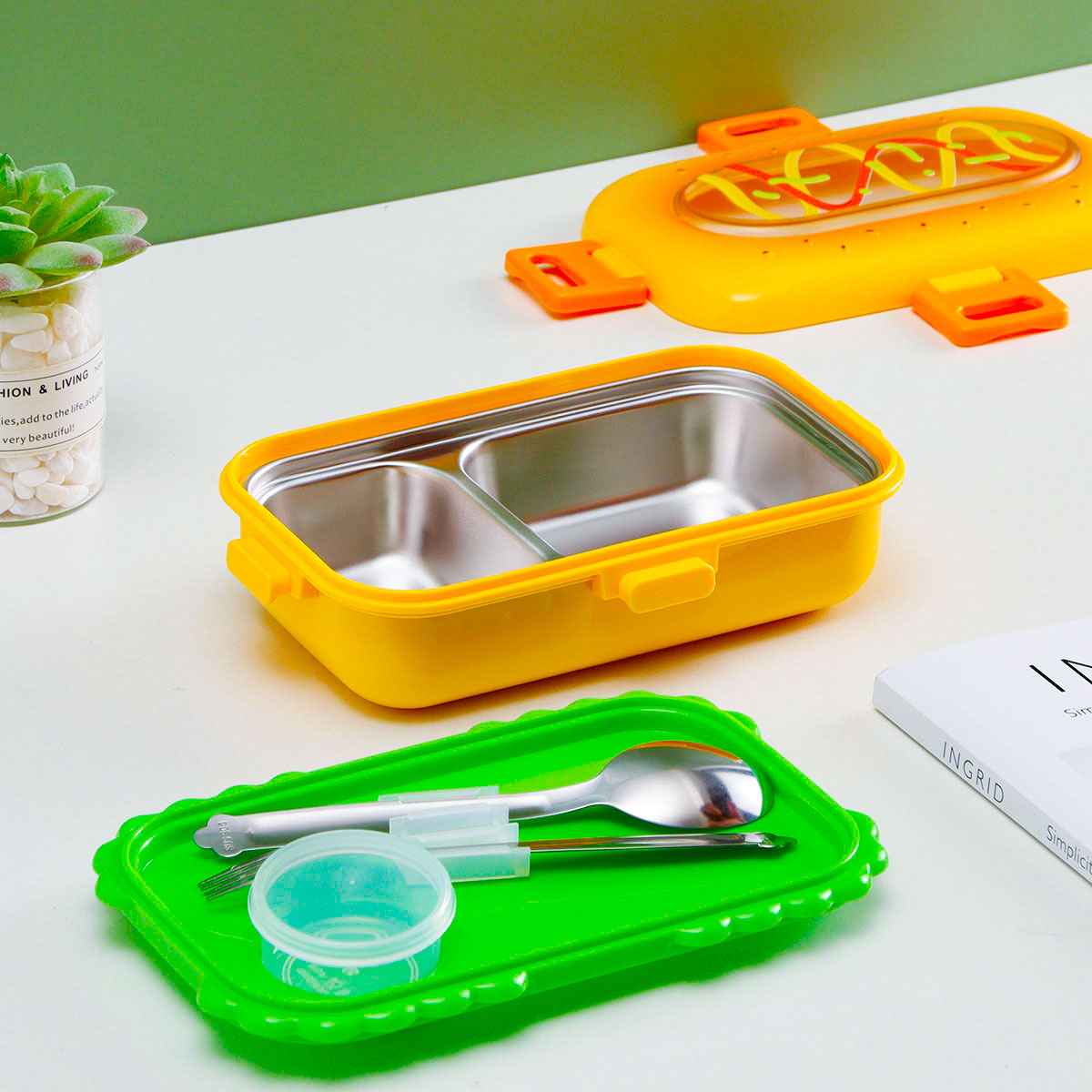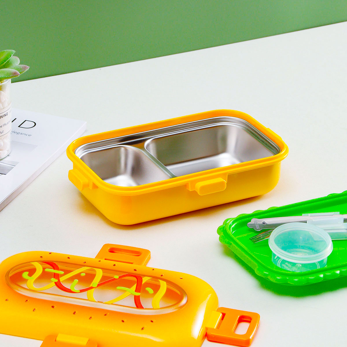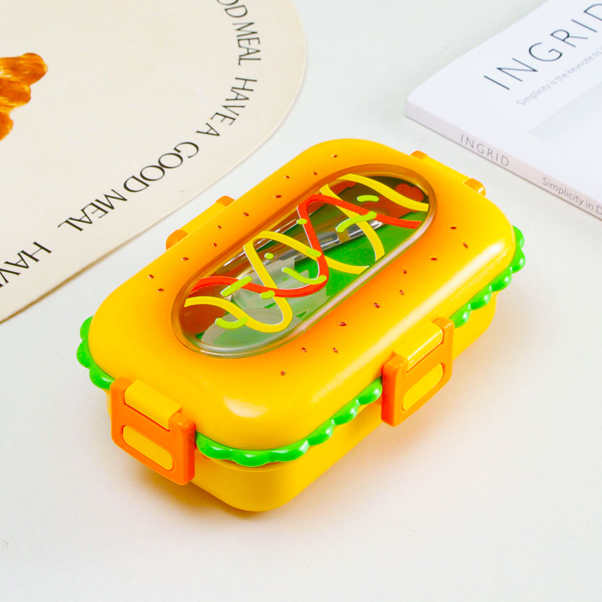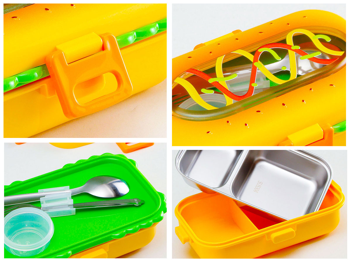 火腿漢堡不銹鋼飯盒(不銹鋼叉匙)/塑料飯盒(塑料叉匙)