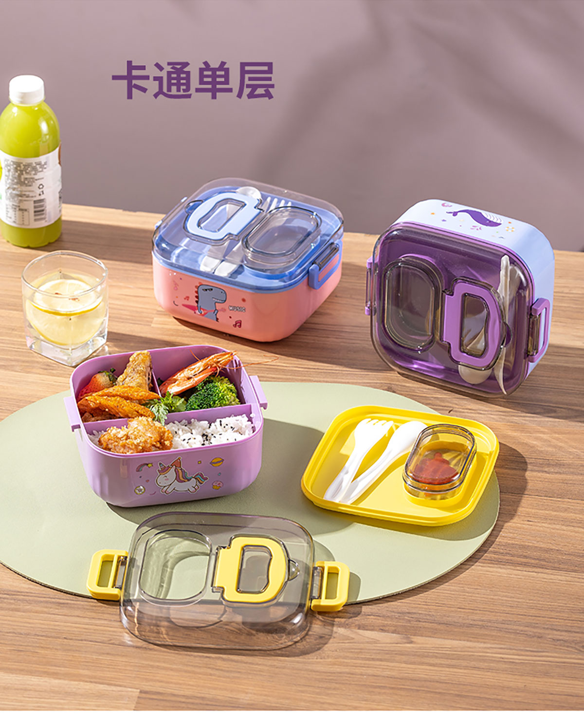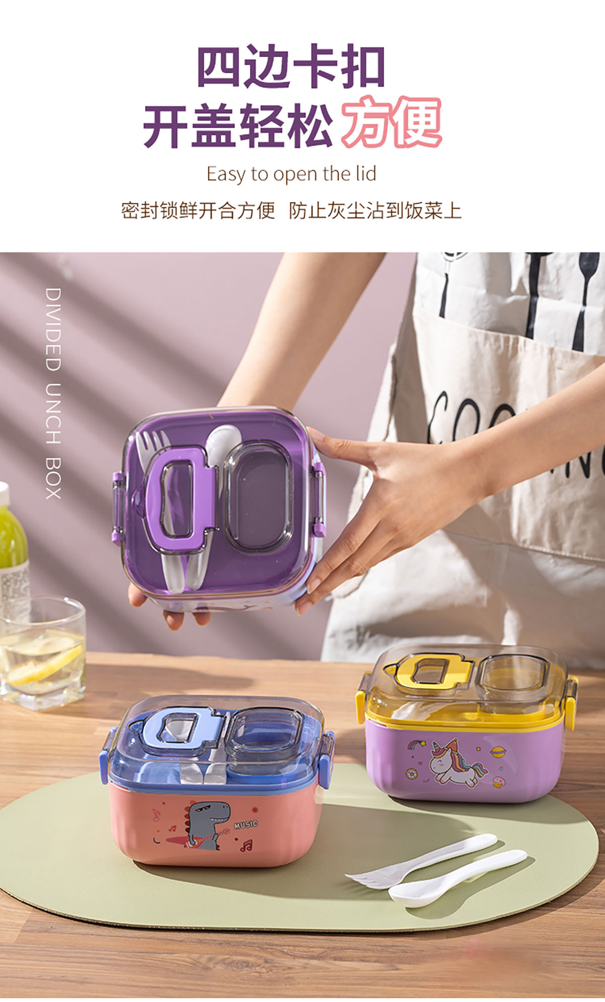 悅味塑料單層分格/單層/雙層方形飯盒850ml