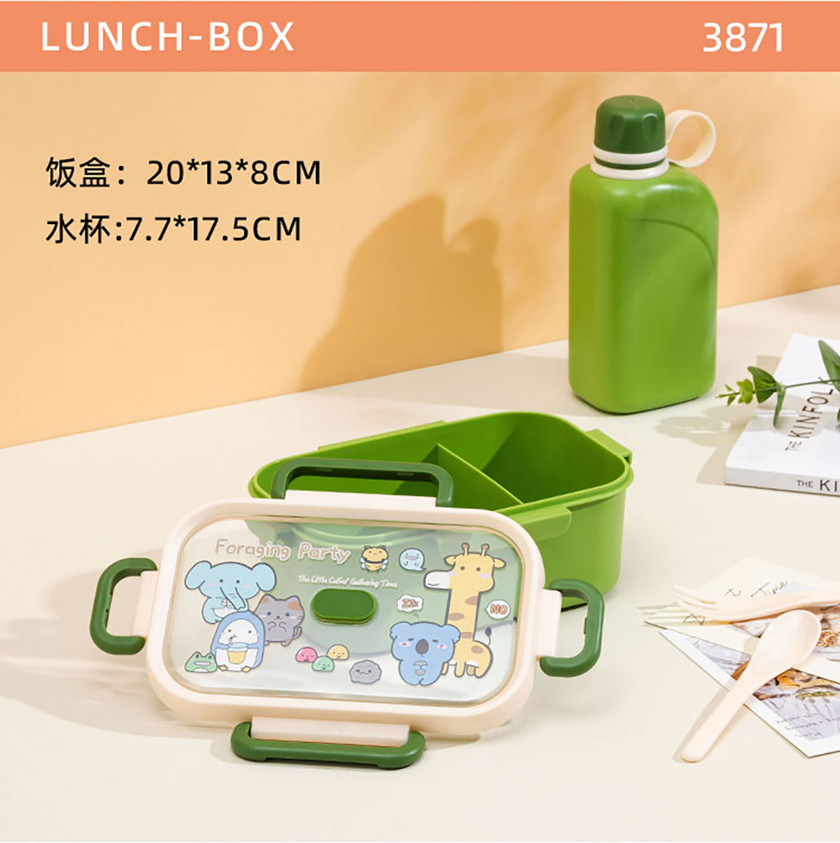 ZY-3871:飯盒:200*130*80mm/1000ml 水壺:77*175mm/500ml