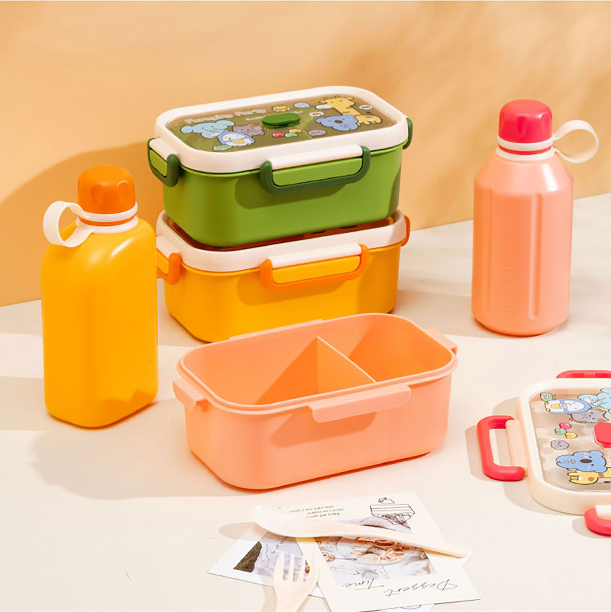 尚趣長方單層分格飯盒(1000ml)/+圓形/方形運(yùn)動(dòng)水壺(500ml)