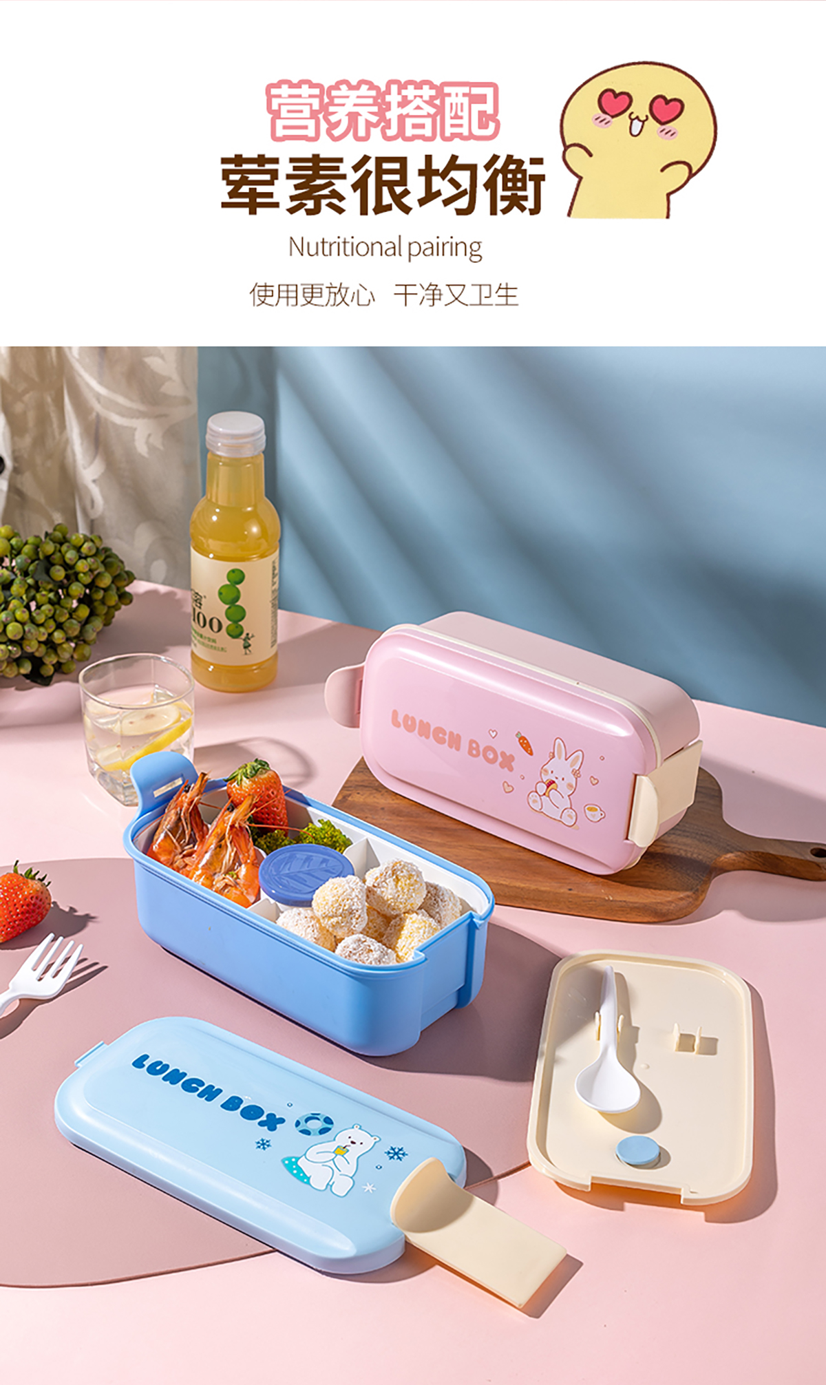 小長方單扣三格飯盒