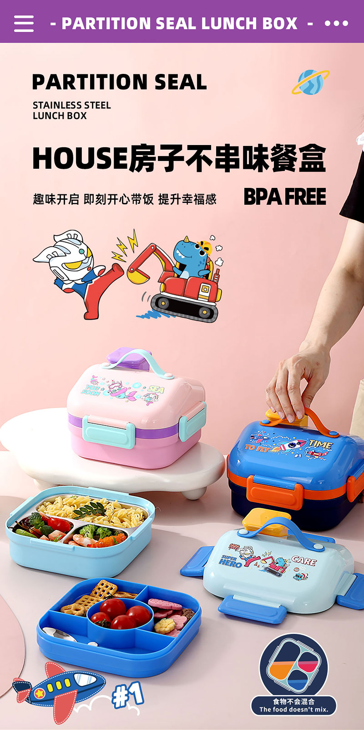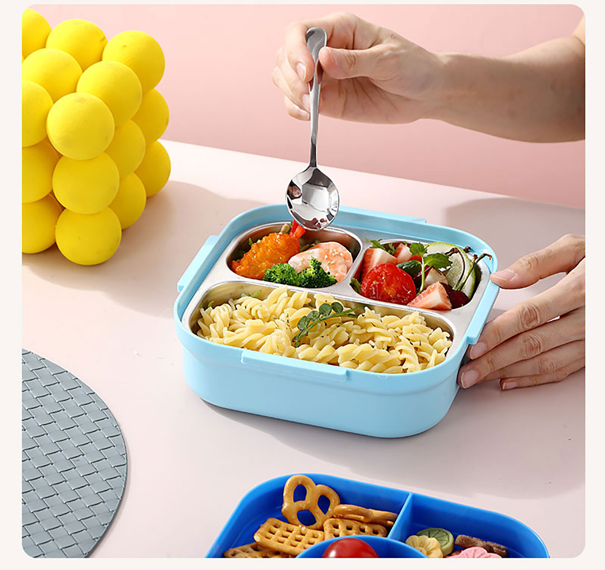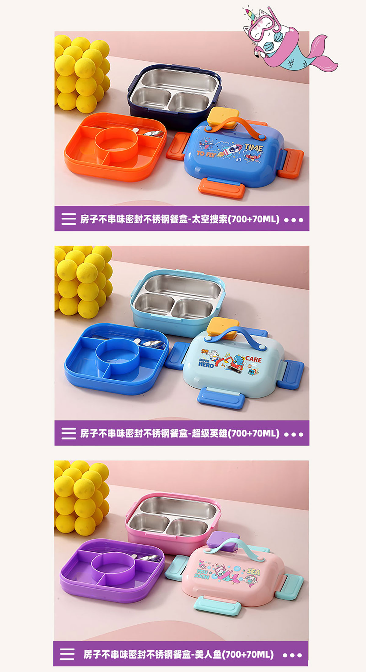 HOUSE房子不串味密封不銹鋼餐盒(方形3格700ml+碗70ml+不銹鋼勺)