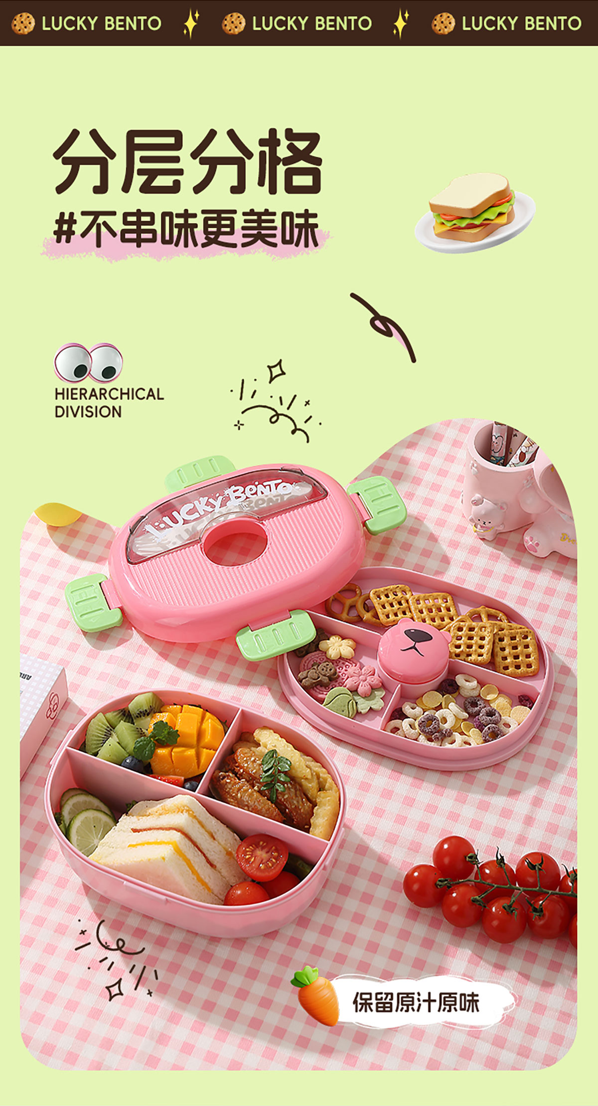 眼鏡熊分格飯盒1350ml