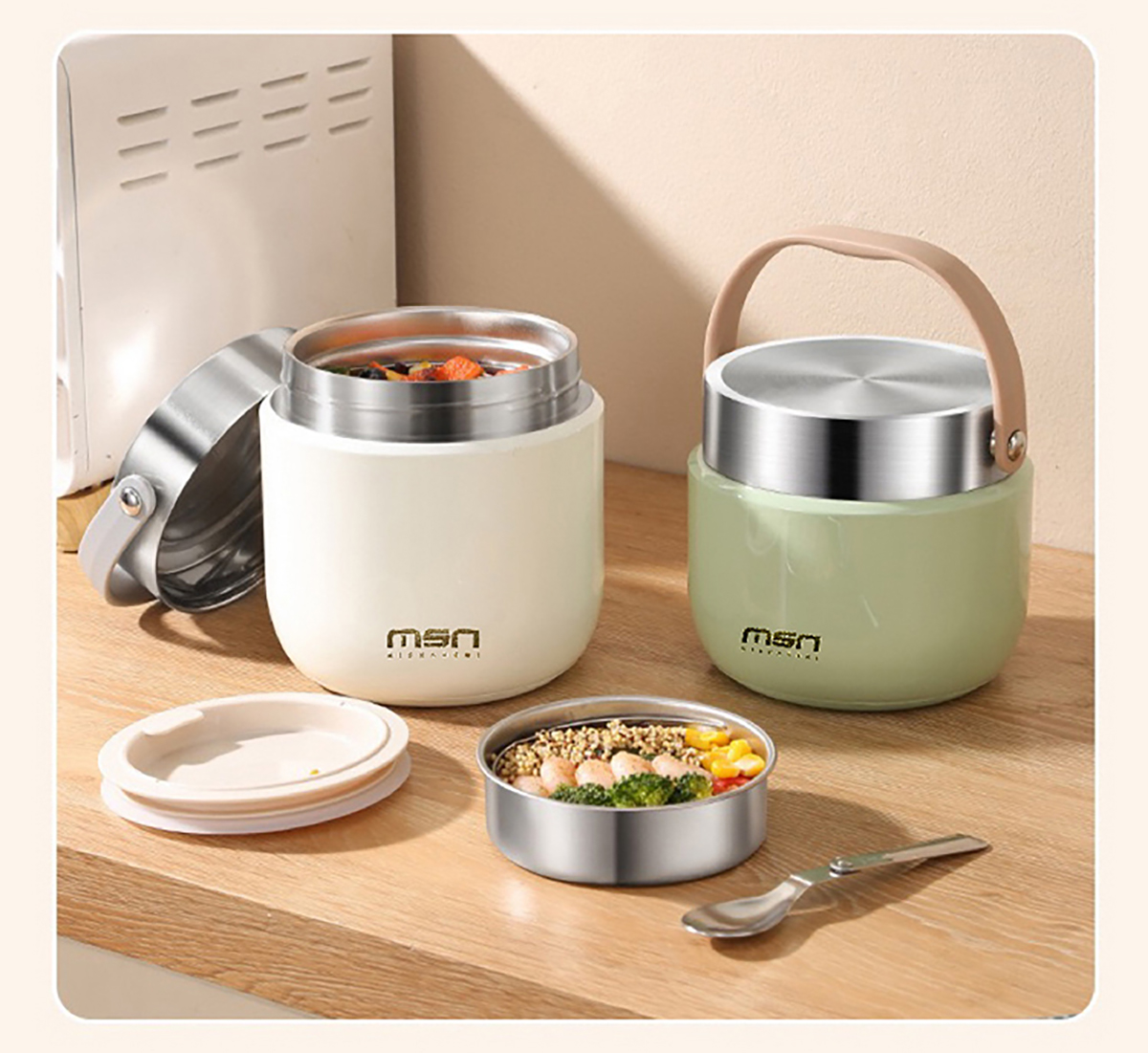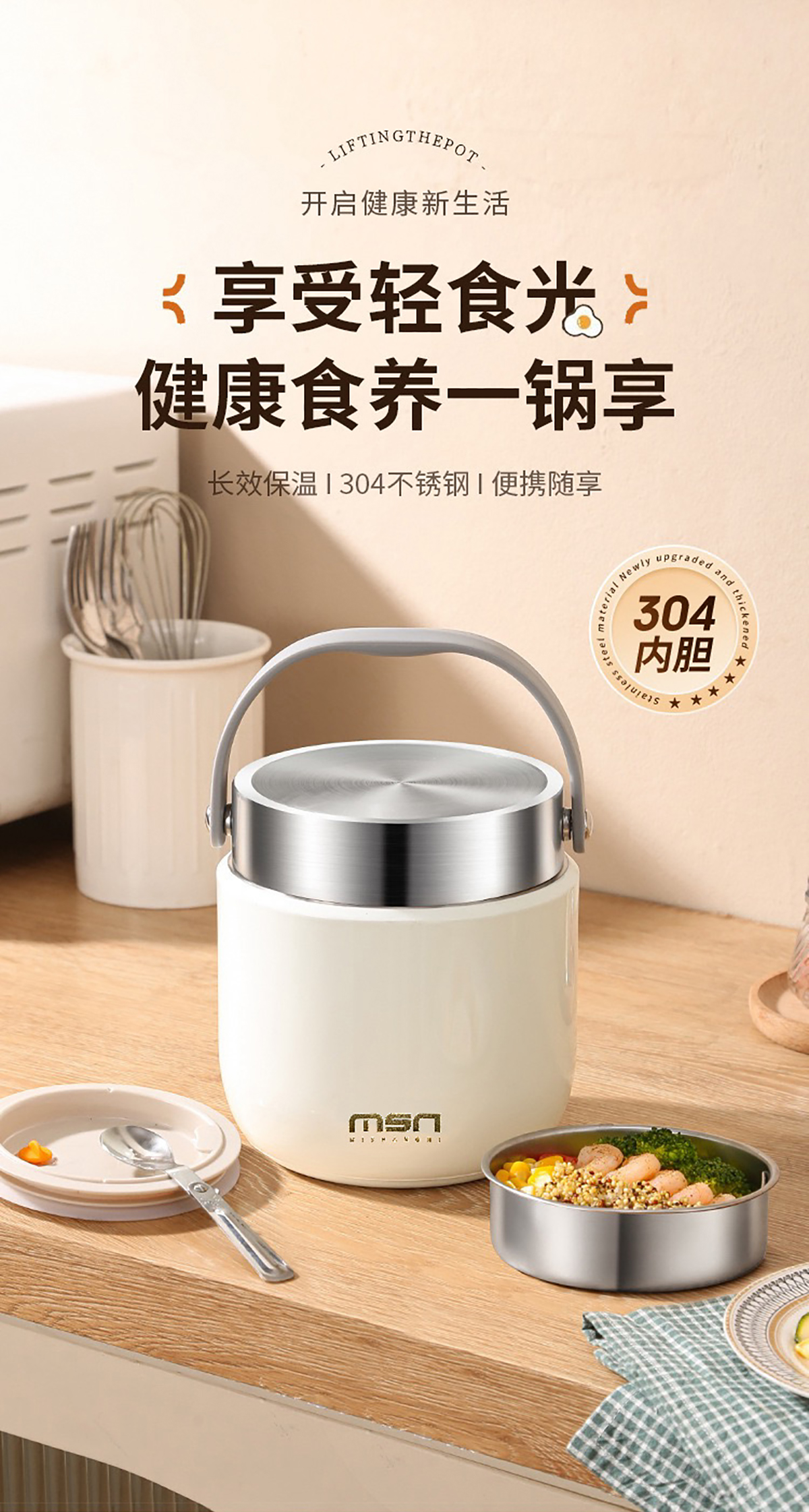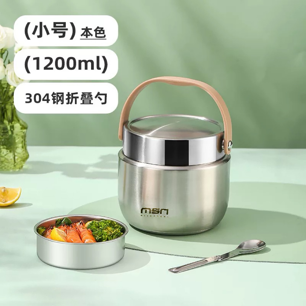 1.2L/1.5L304真空防溢雙層飯盒 本色/漸變