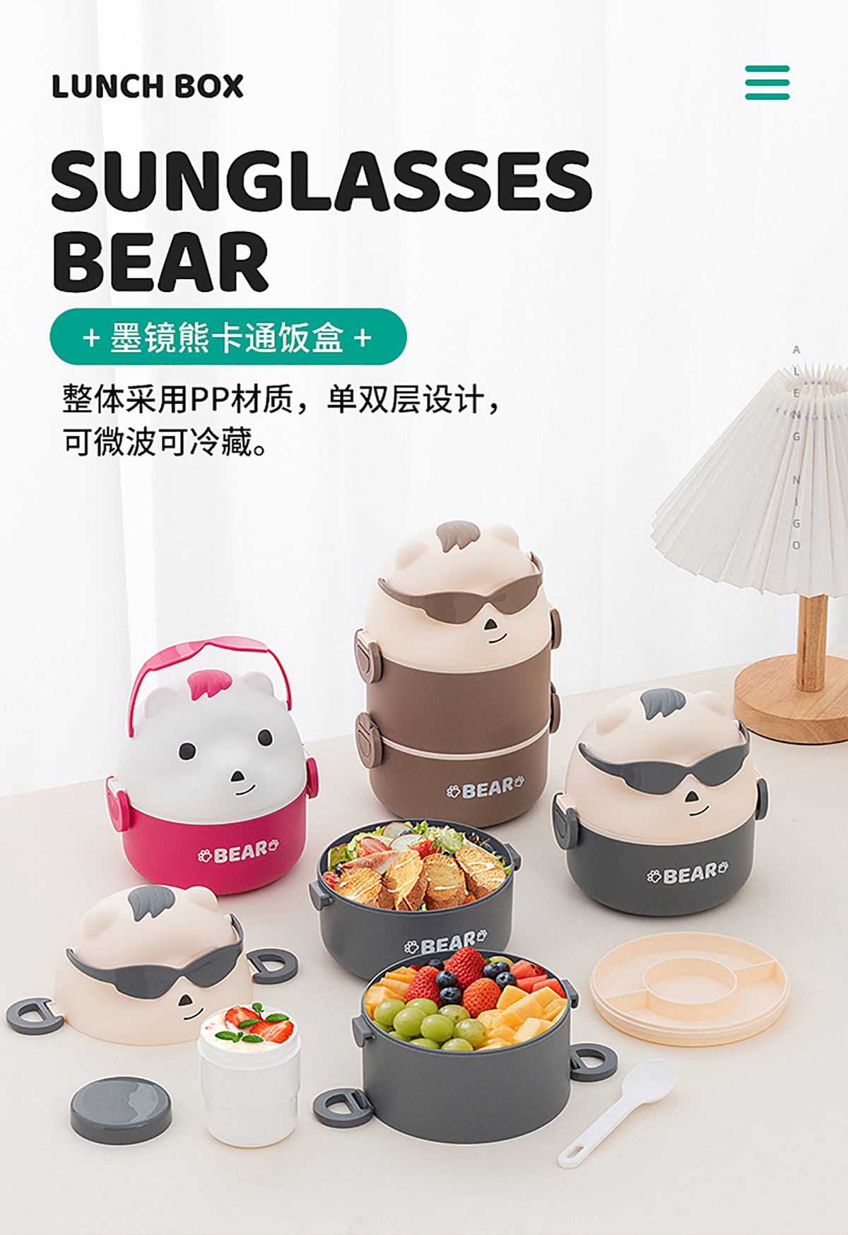 墨鏡熊單層/單層加水杯/雙層/雙層加水杯便當盒