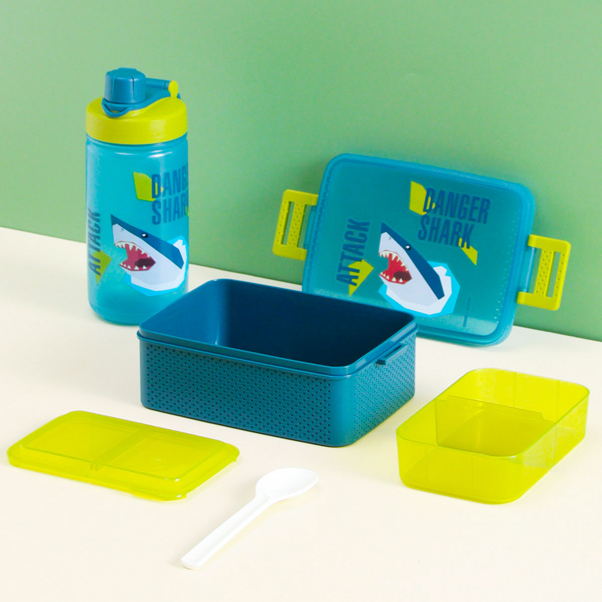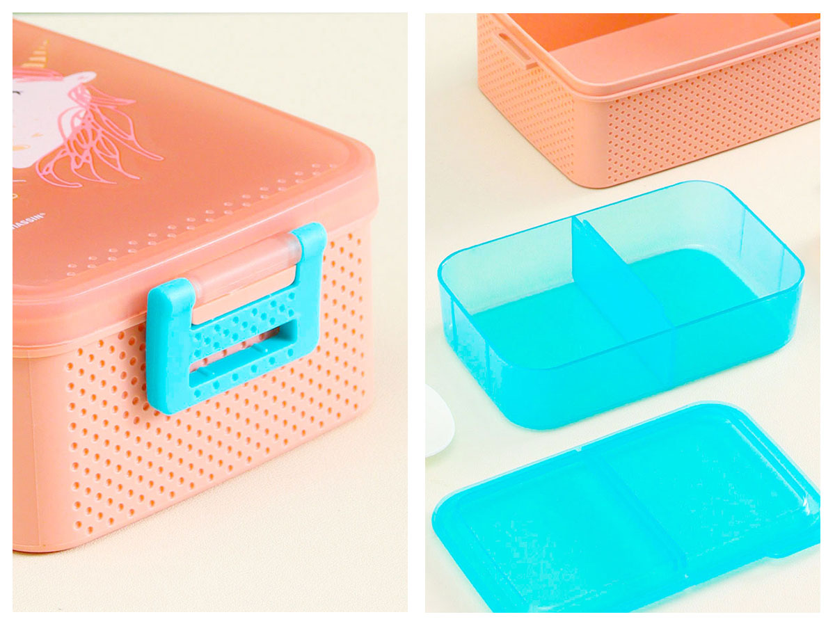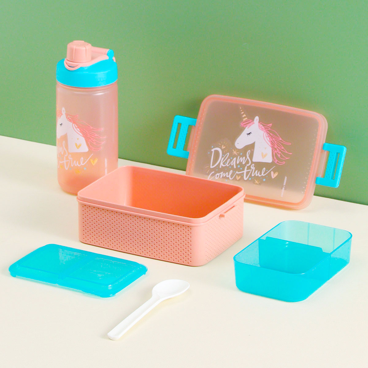 童彩3格飯盒+運動水壺套裝(含內(nèi)盒800ml+500ml)