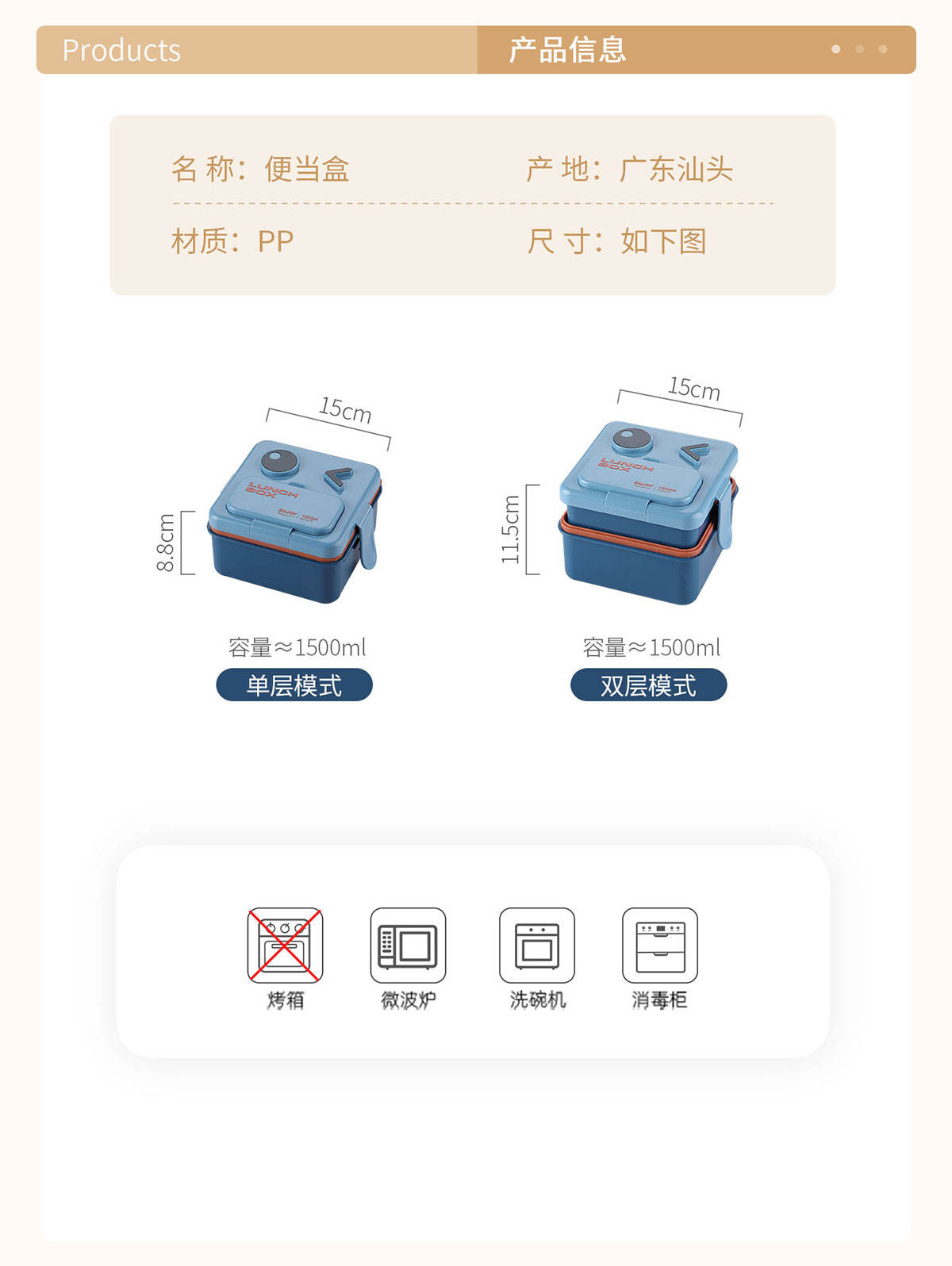 Size: 單層模式:150*88mm/1500ml 雙層模式:150*115mm/1500ml